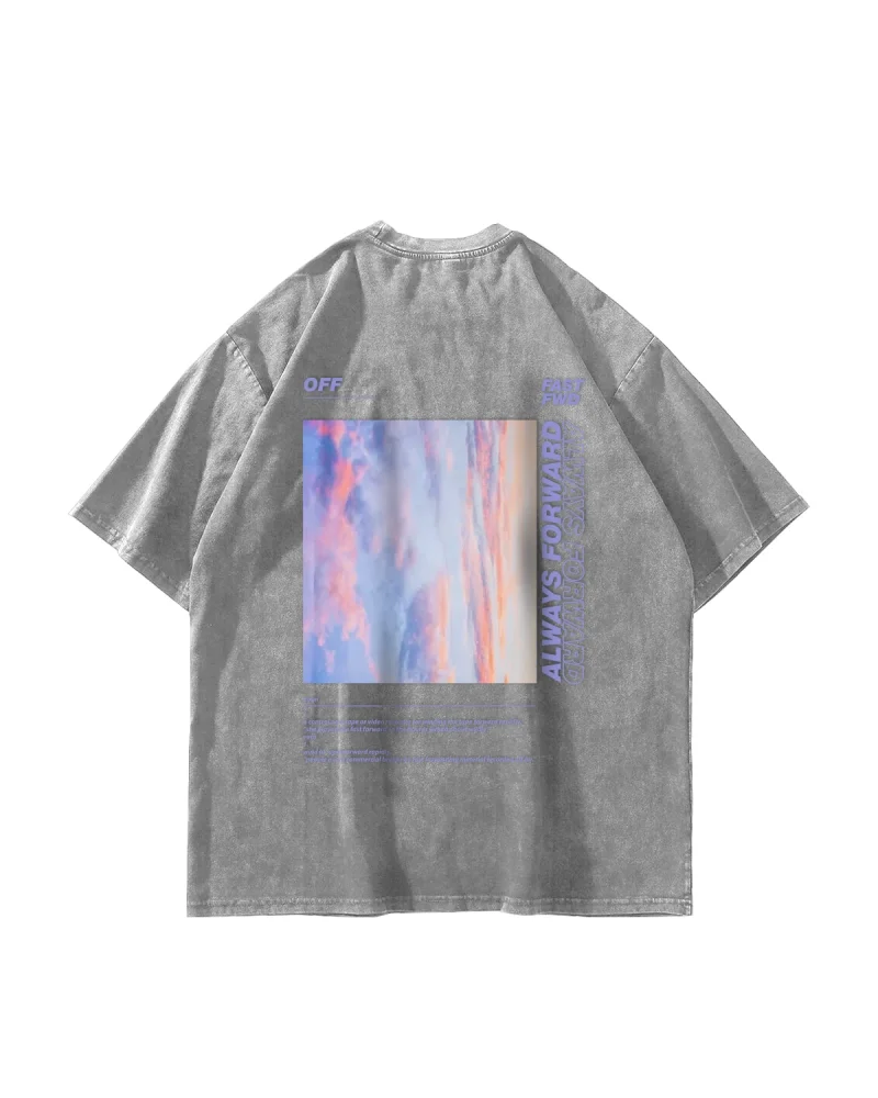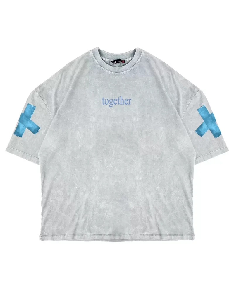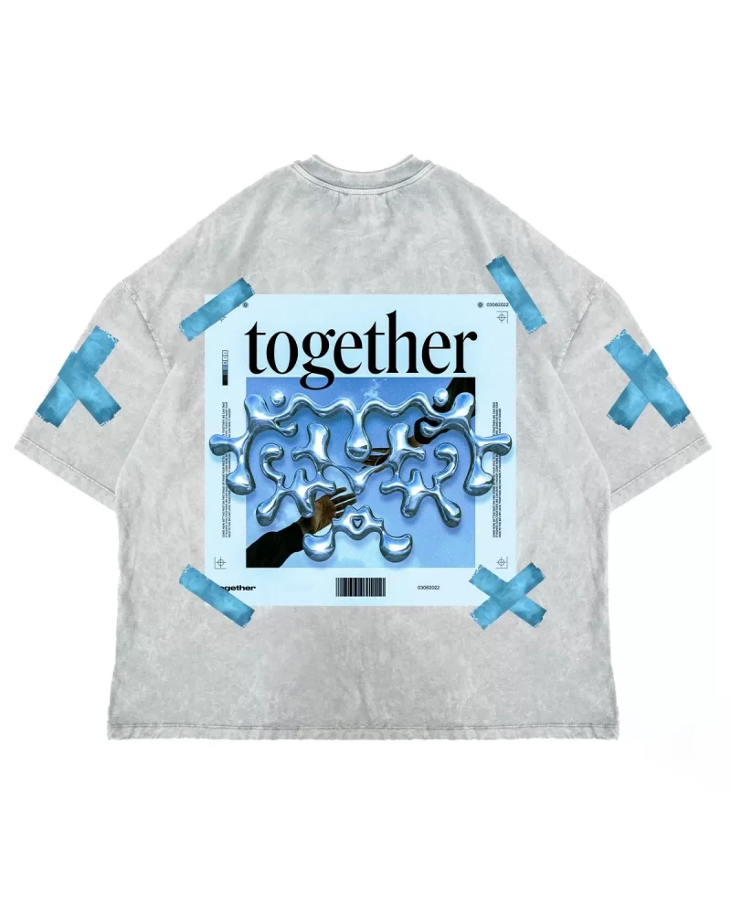 Yıkamalı Beyaz Together Sırt Baskılı Oversize Unisex Tshirt