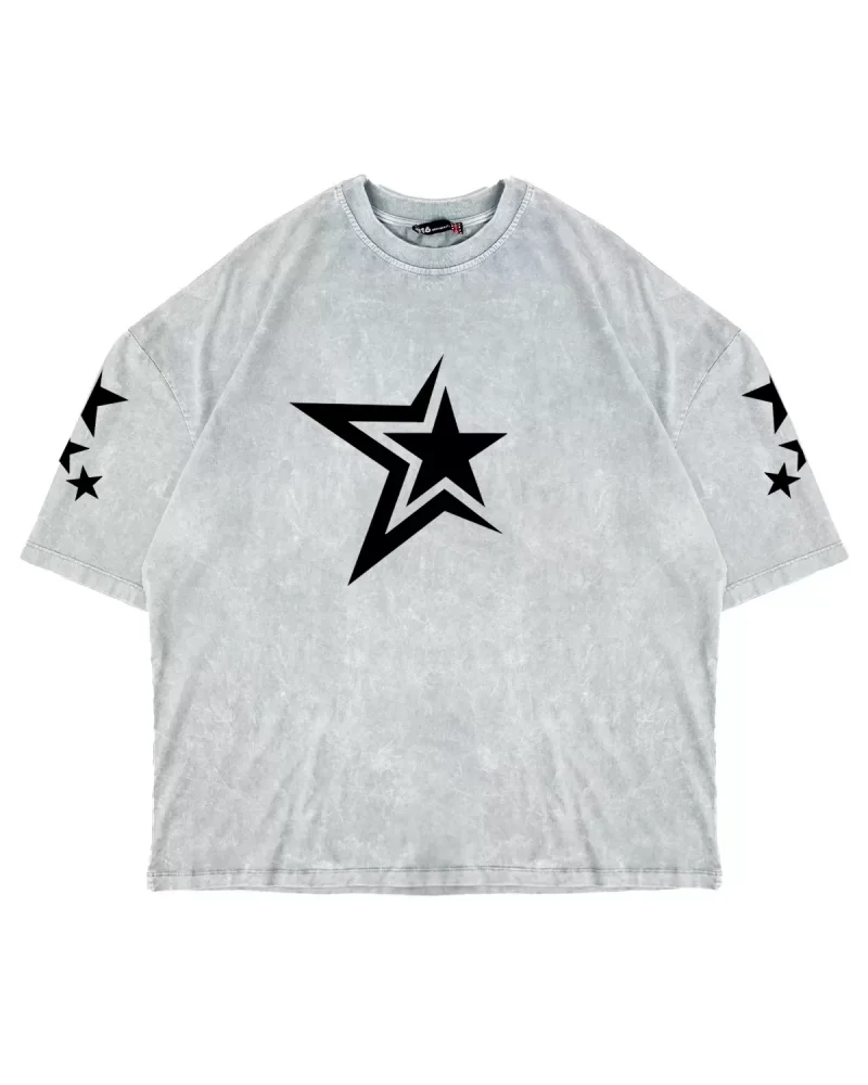 Yıkamalı Beyaz 816 Stars Baskılı Oversize Unisex Tshirt