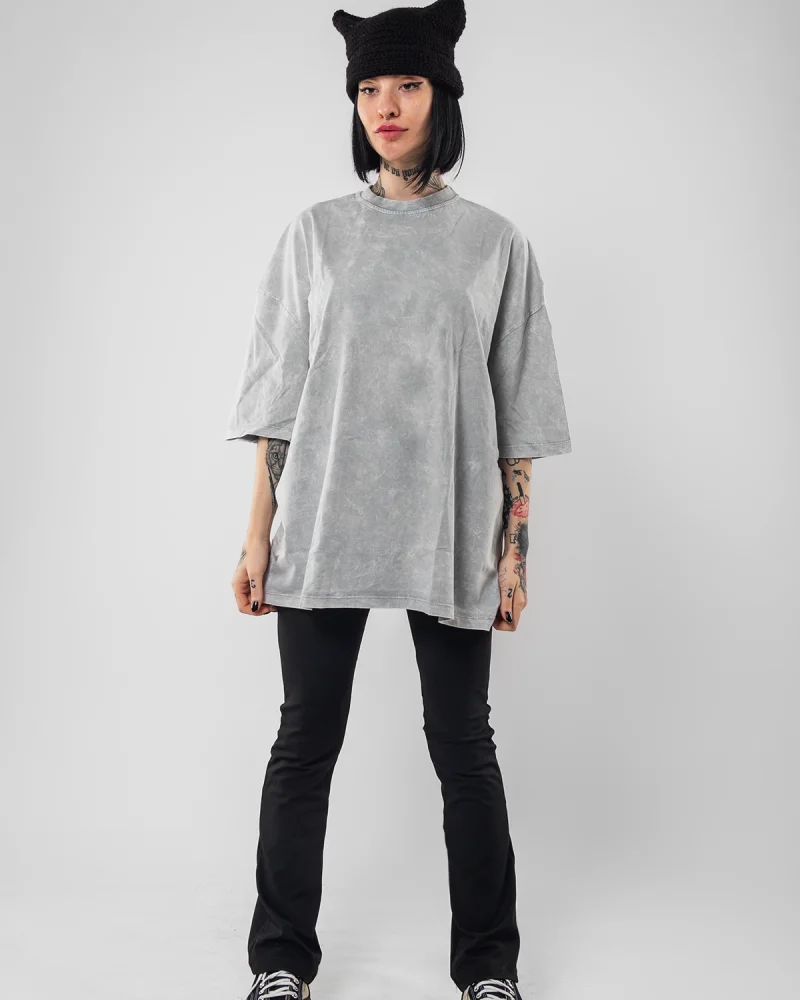 Yıkamalı Siyah Basic Oversize Unisex Tshirt
