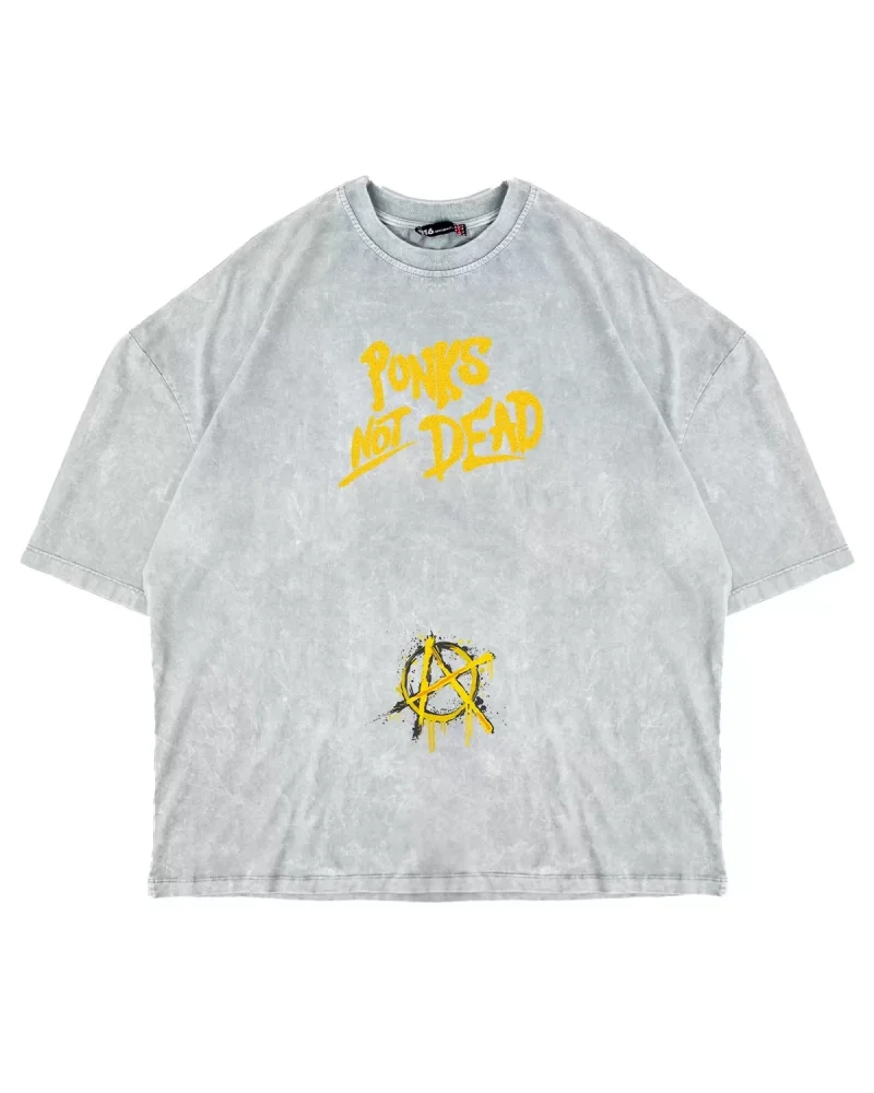 Yıkamalı Siyah Punks Not Dead Sırt Baskılı Oversize Unisex Tshirt