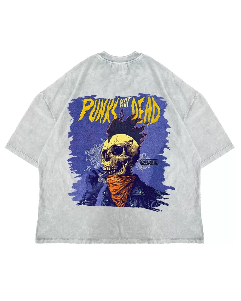 Yıkamalı Beyaz Punks Not Dead Sırt Baskılı Oversize Unisex Tshirt