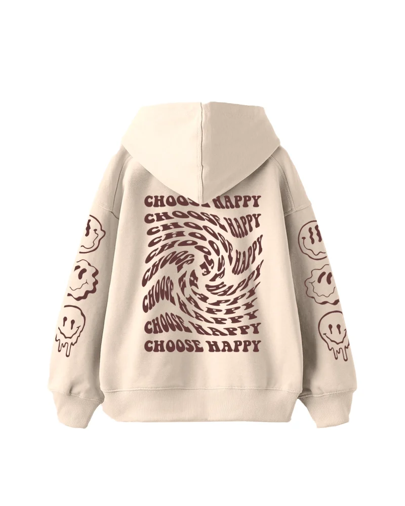 Choose Happy Baskılı Oversize Unisex Bej Hoodie