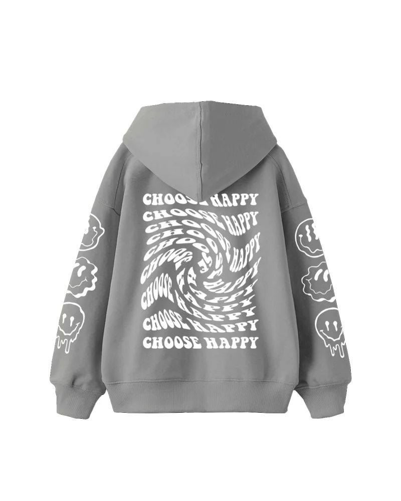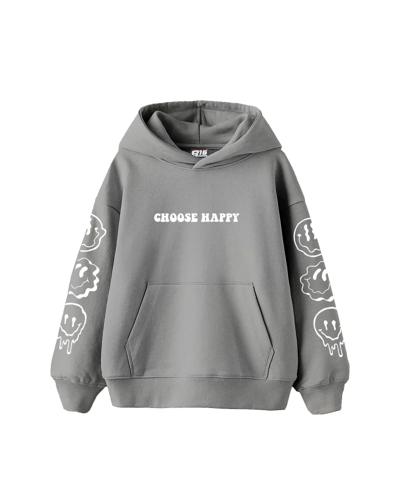 Choose Happy Baskılı Oversize Unisex Gri Hoodie