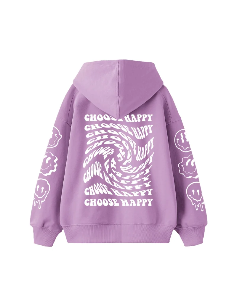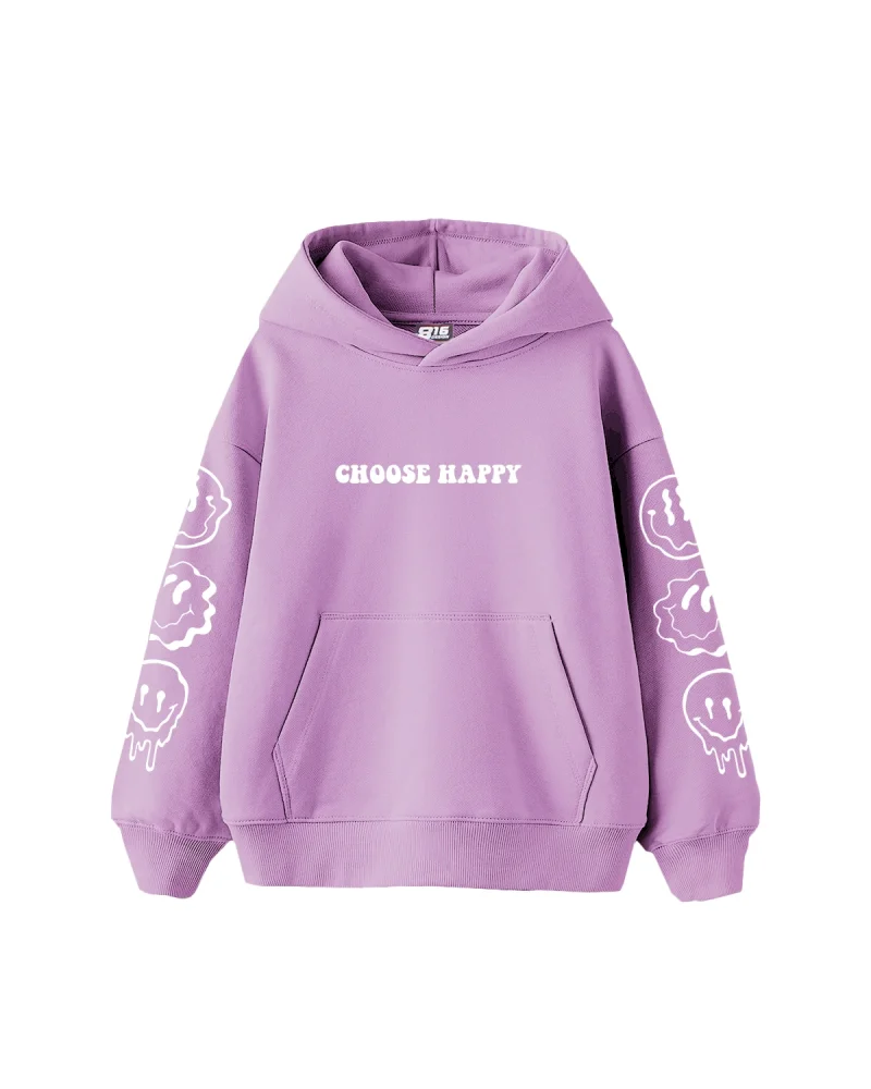 Choose Happy Baskılı Oversize Unisex Mor Hoodie