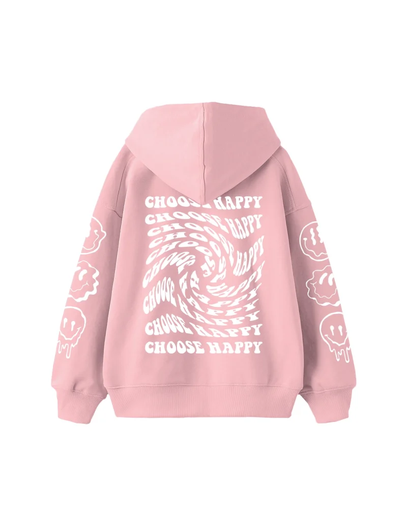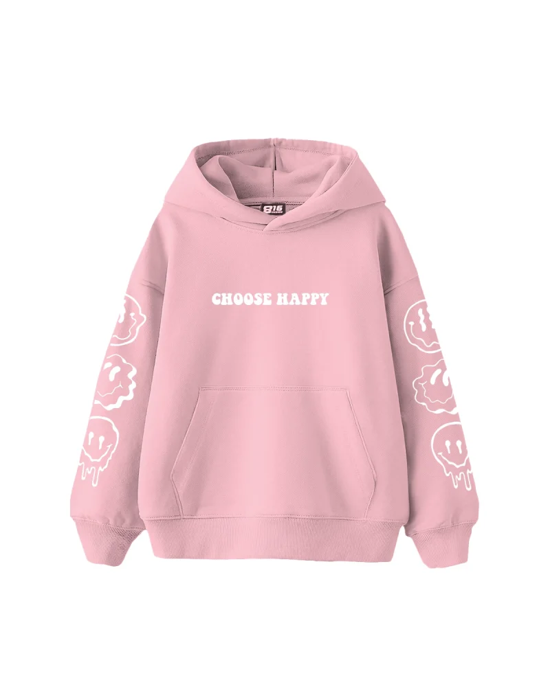 Choose Happy Baskılı Oversize Unisex Pembe Hoodie