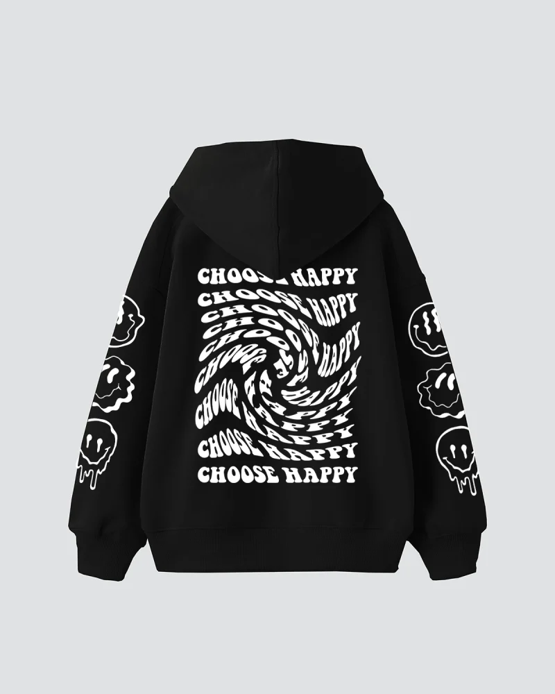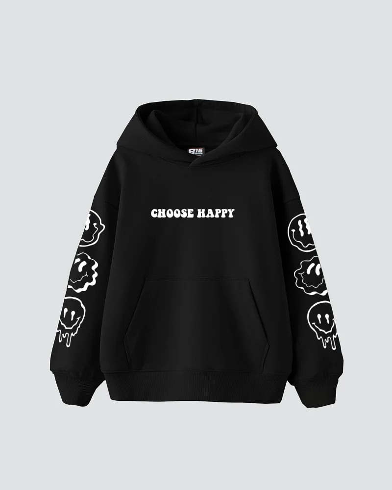 Choose Happy Baskılı Oversize Unisex Siyah Hoodie
