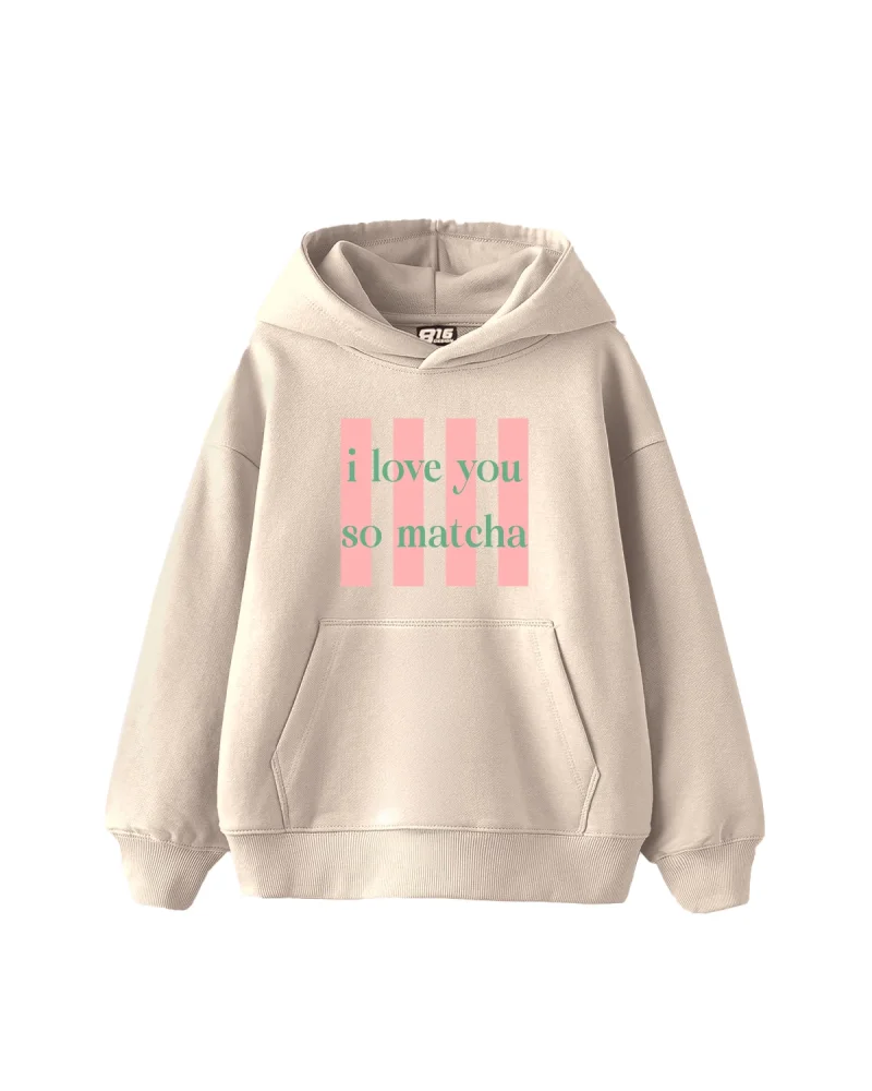 I Love You So Matcha Baskılı Oversize Unisex Bej Hoodie