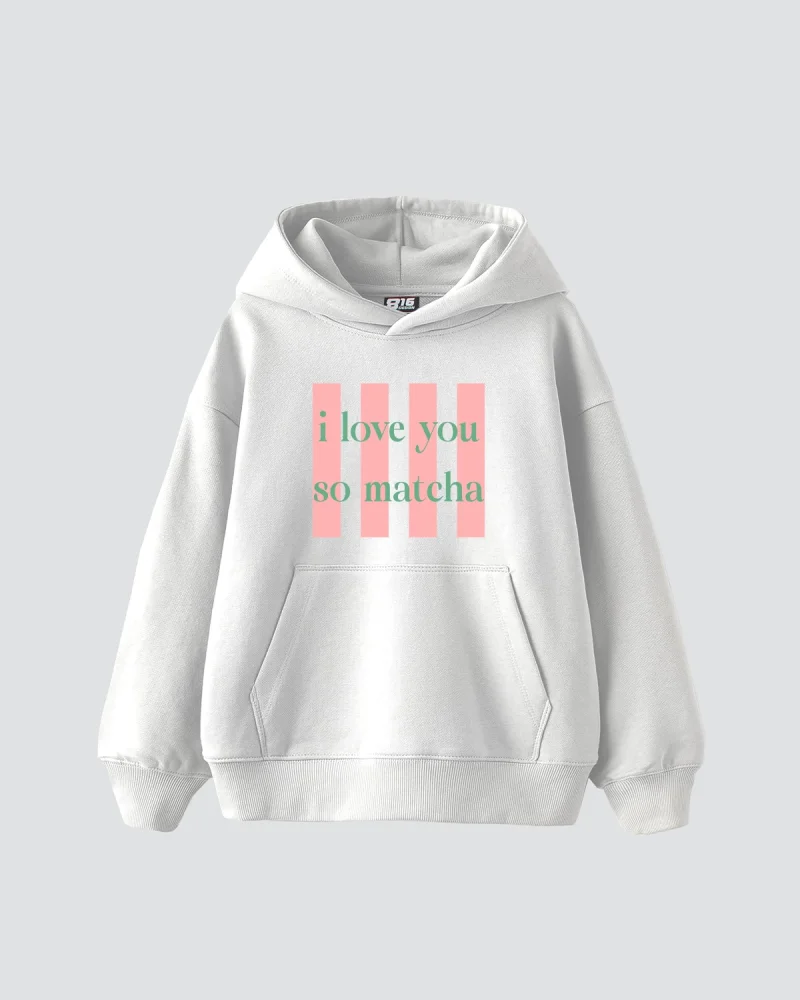 I Love You So Matcha Baskılı Oversize Unisex Beyaz Hoodie