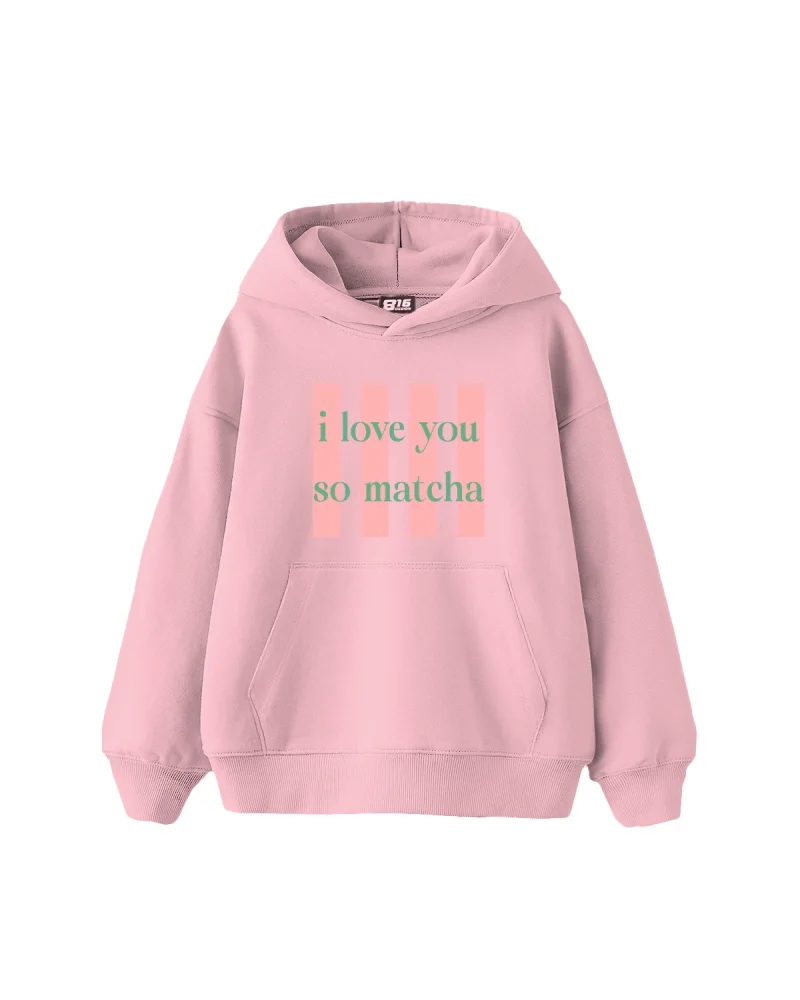 I Love You So Matcha Baskılı Oversize Unisex Pembe Hoodie