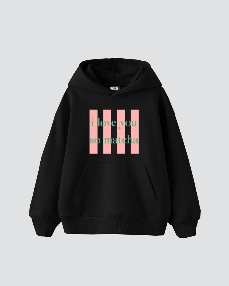 I Love You So Matcha Baskılı Oversize Unisex Siyah Hoodie