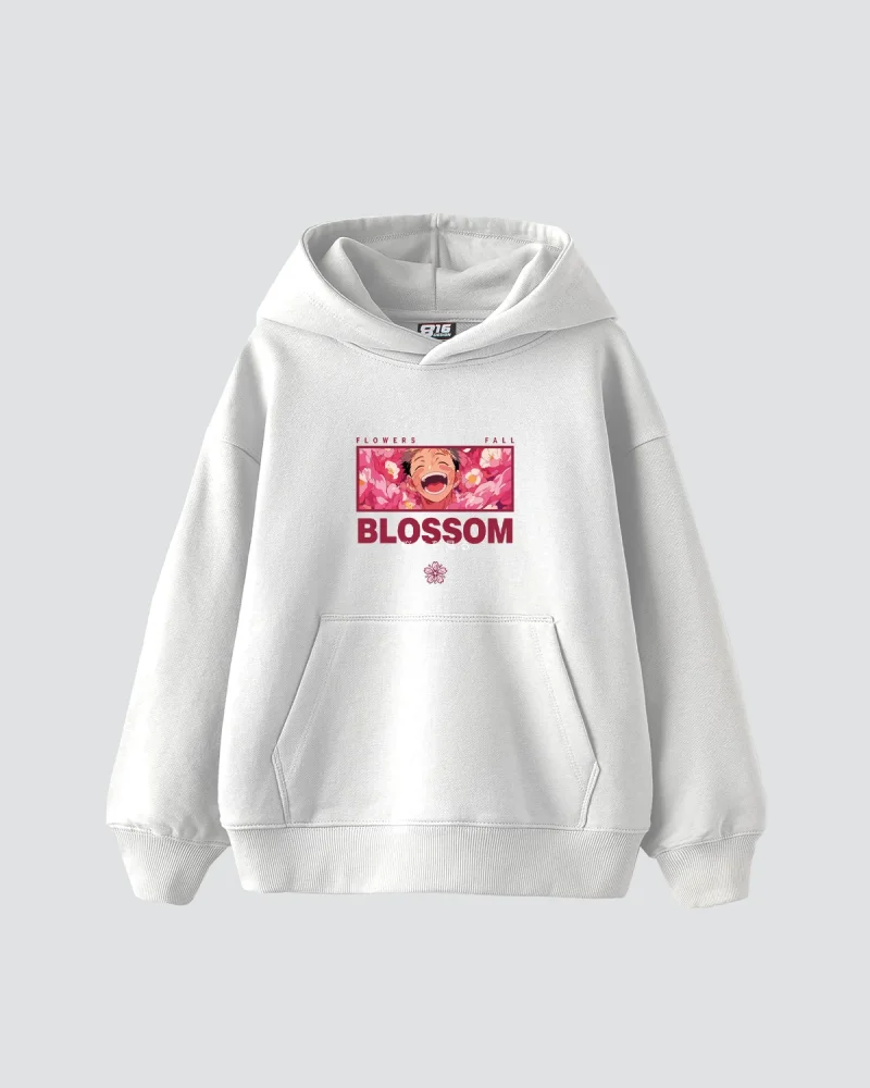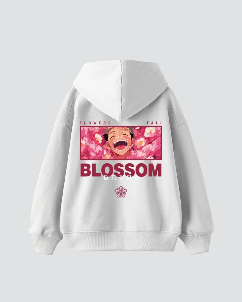 Japanese Anime Baskılı Oversize Unisex Beyaz Hoodie