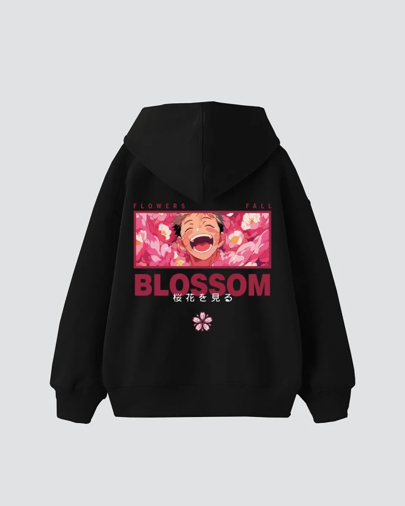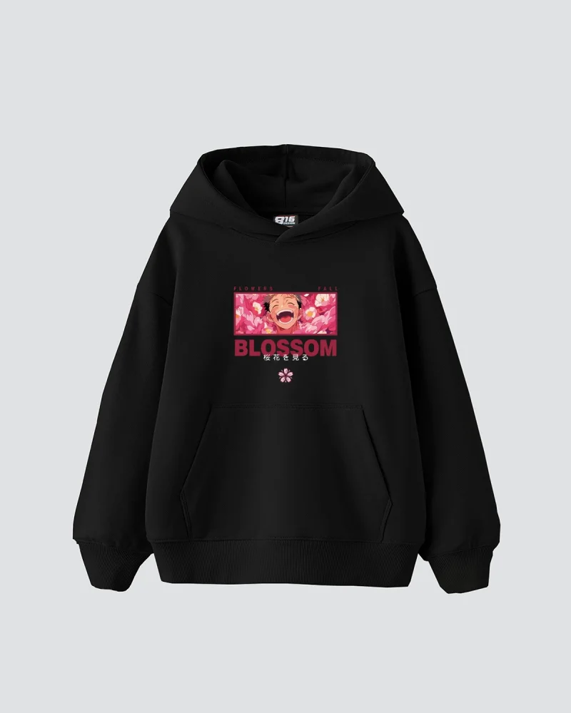 Japanese Anime Baskılı Oversize Unisex Siyah Hoodie