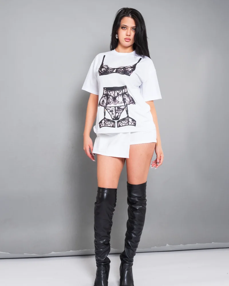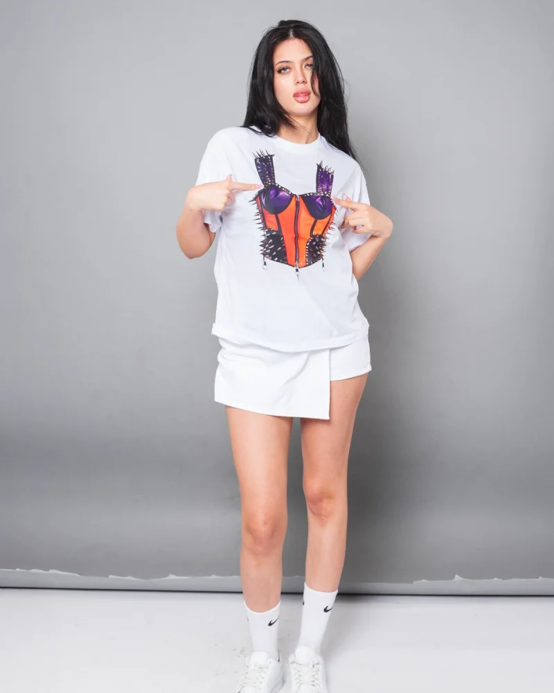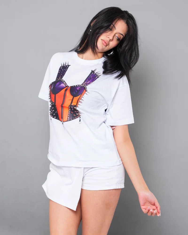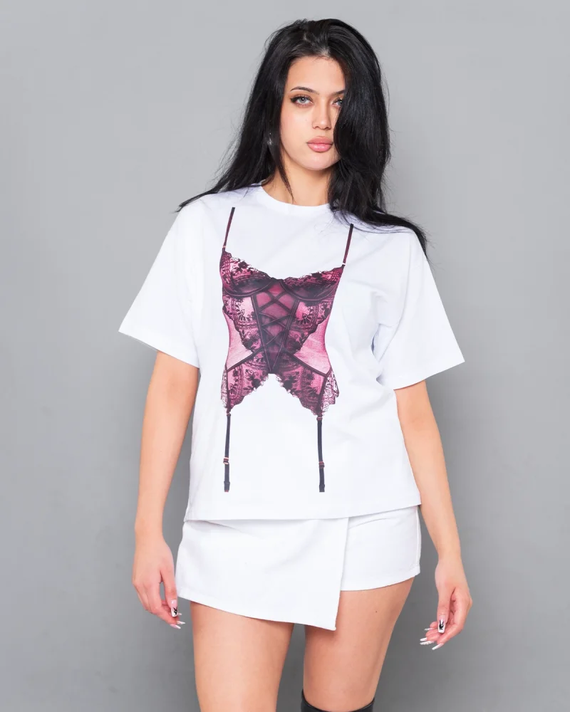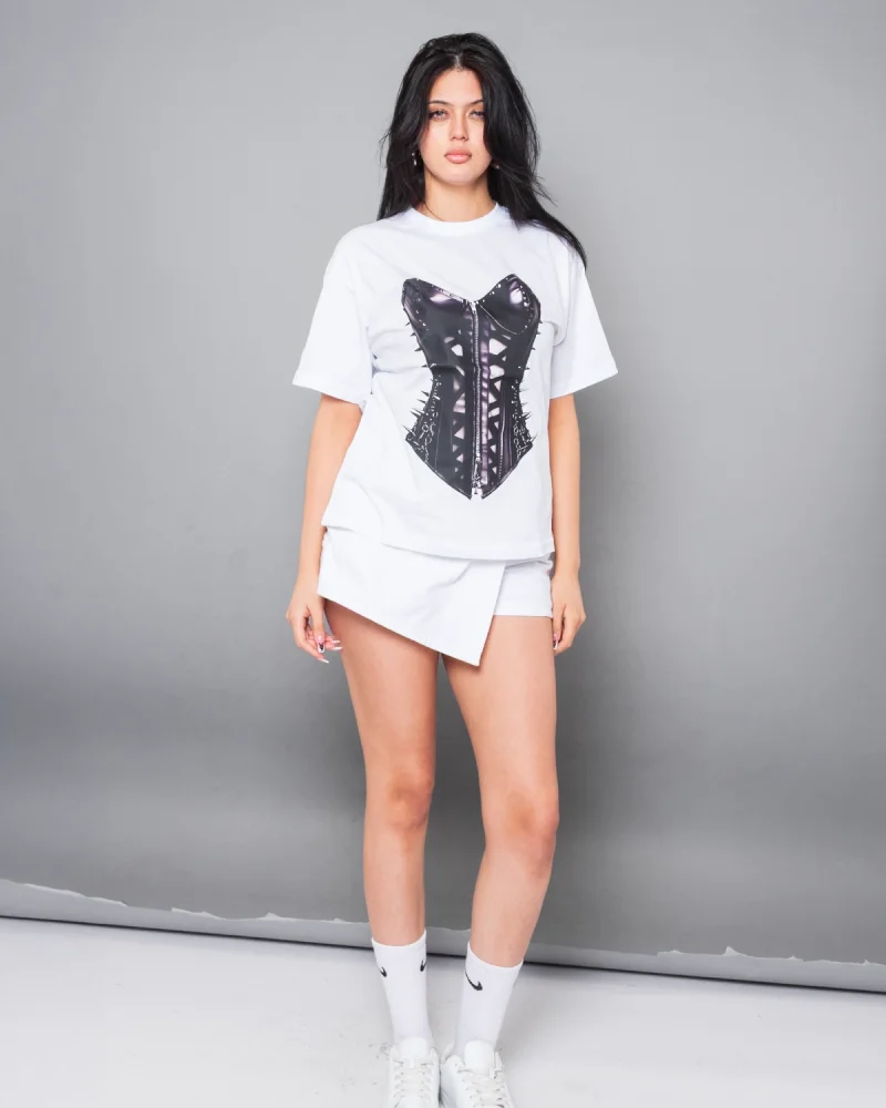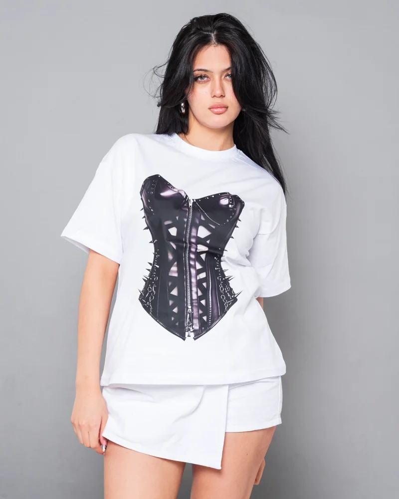 Fit Corset Baskılı Relaxed Fit Beyaz Kadın Tshirt