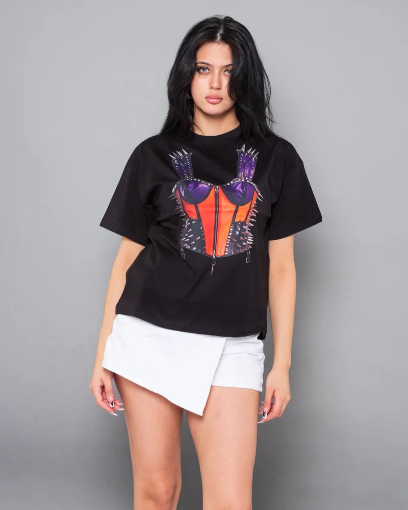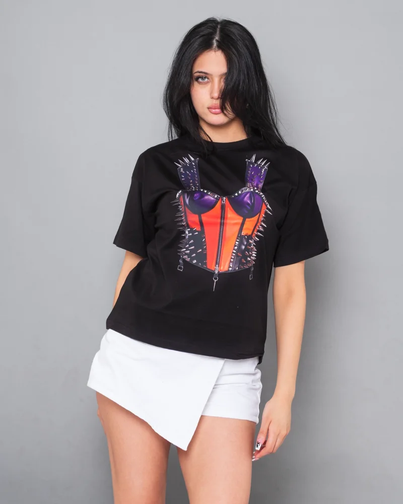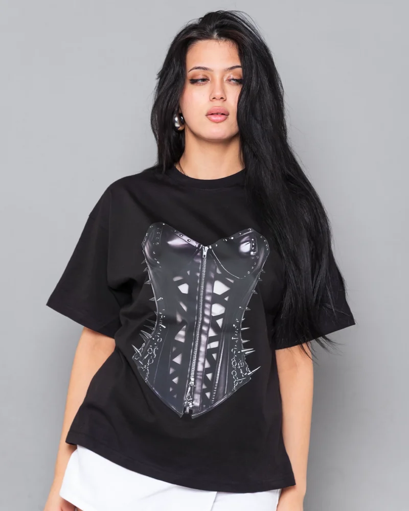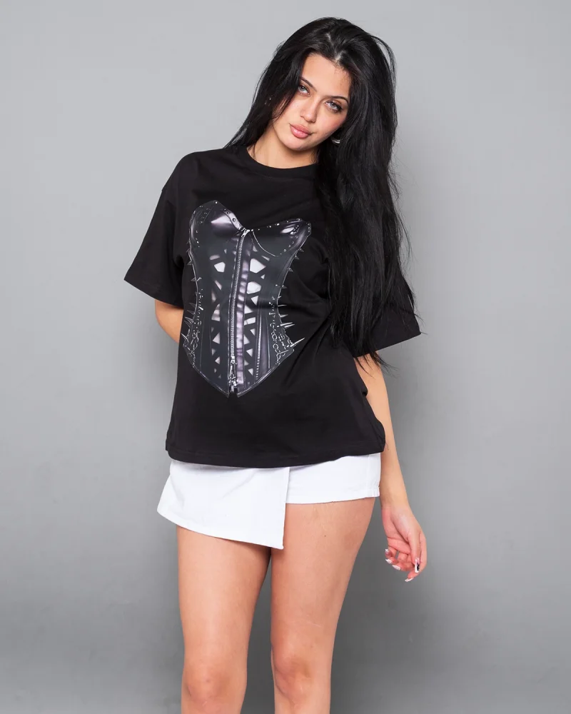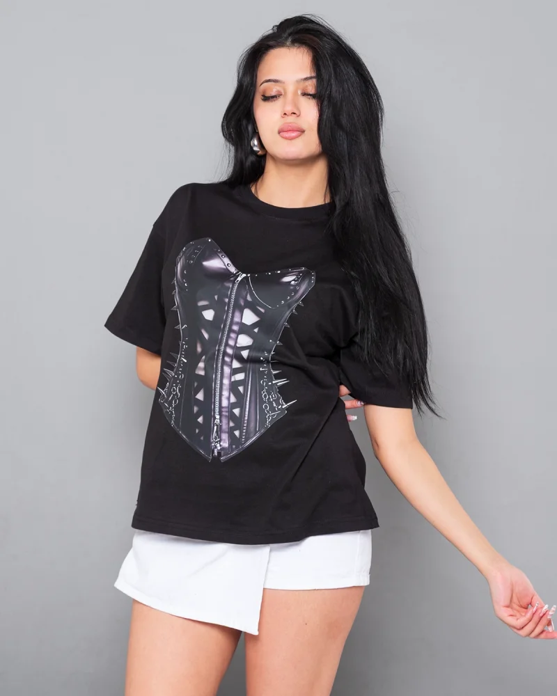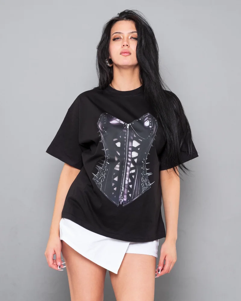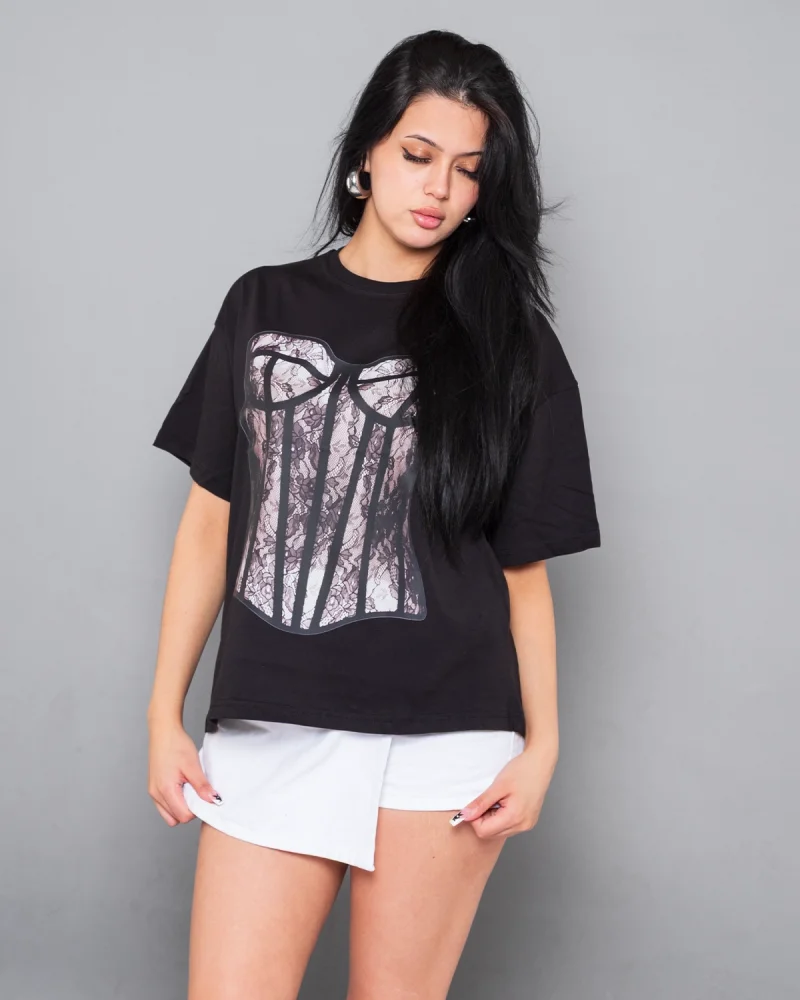 Fit Corset Baskılı Relaxed Fit Siyah Kadın Tshirt