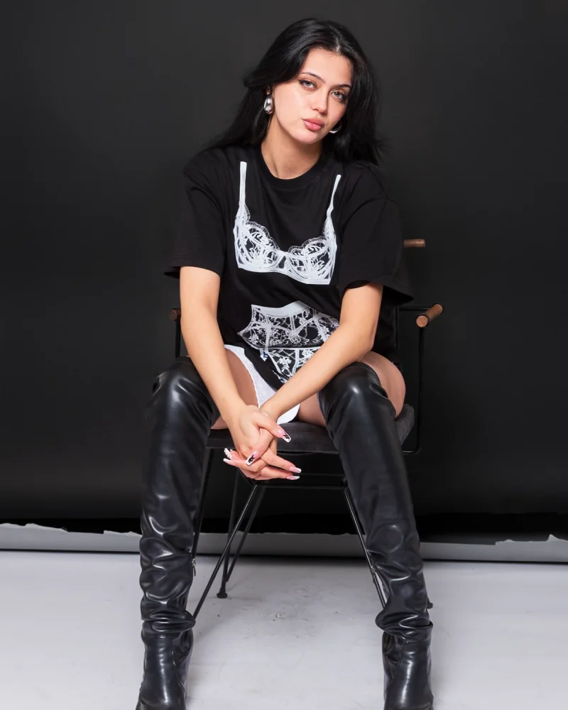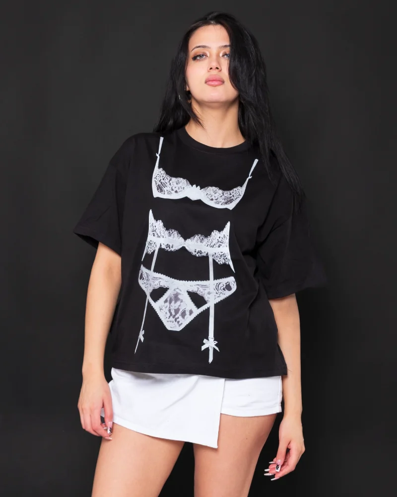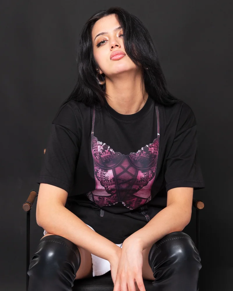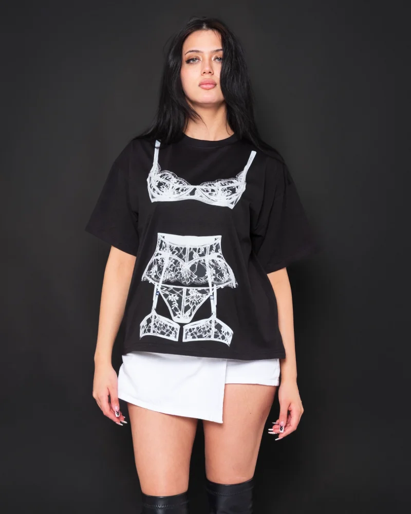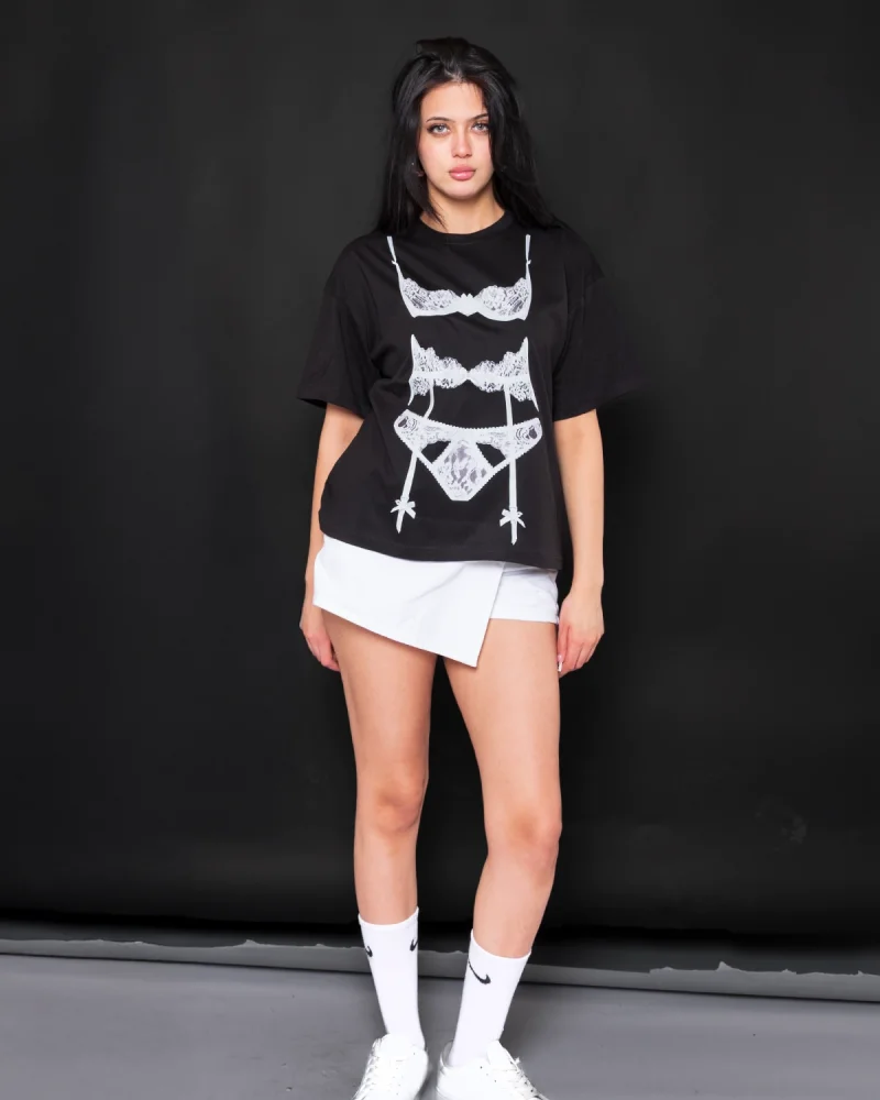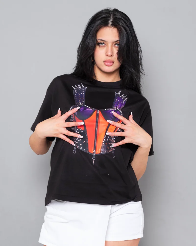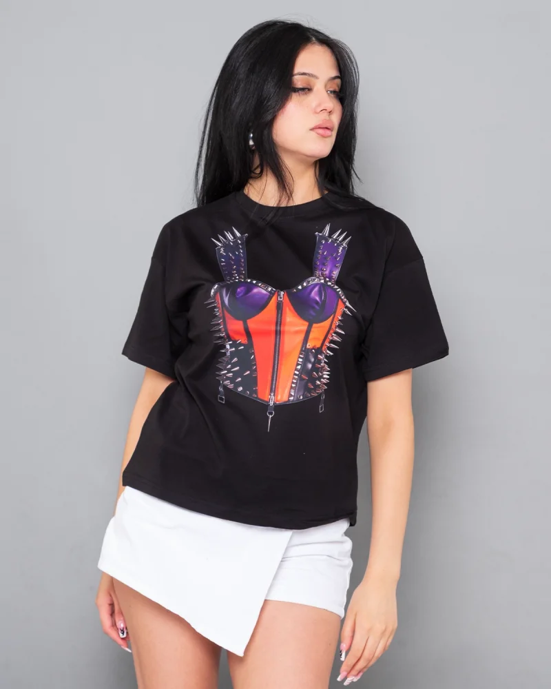 Fit Corset Baskılı Relaxed Fit Siyah Kadın Tshirt