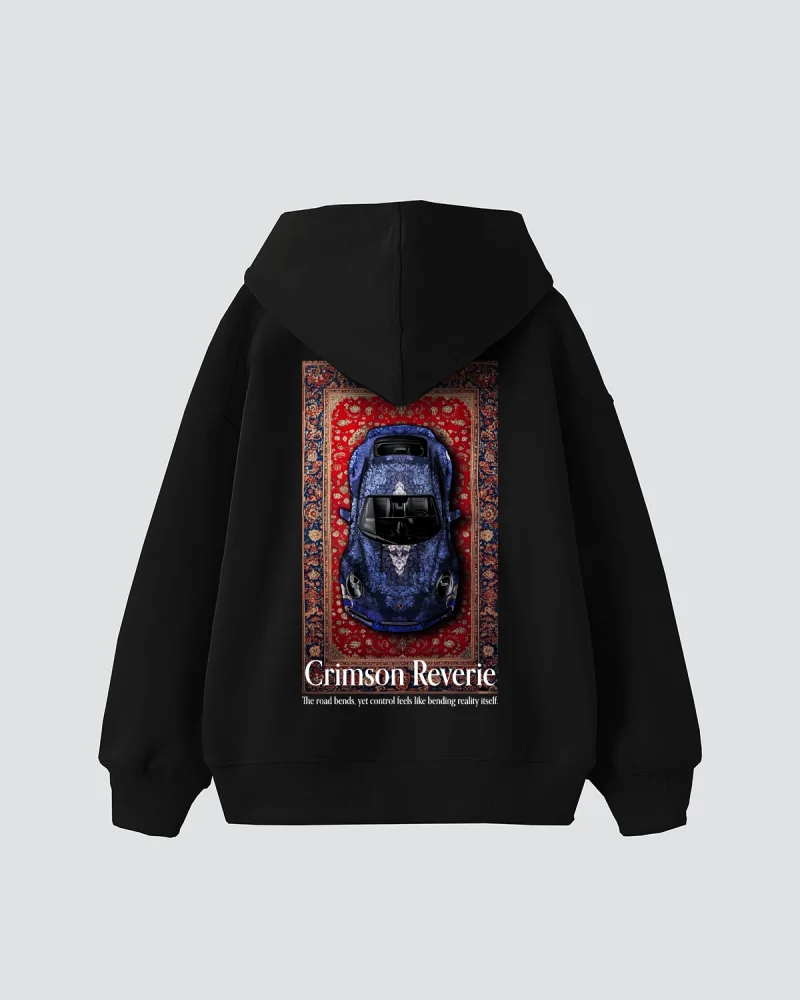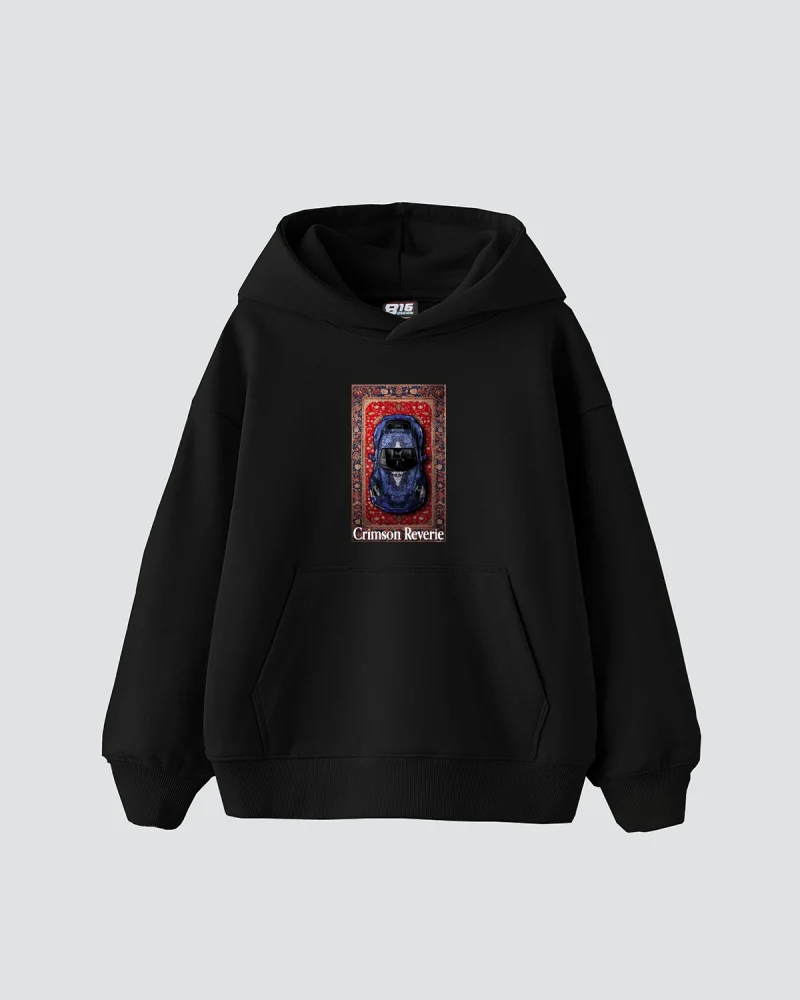 Crimson Reverie Baskılı Oversize Unisex Siyah Hoodie