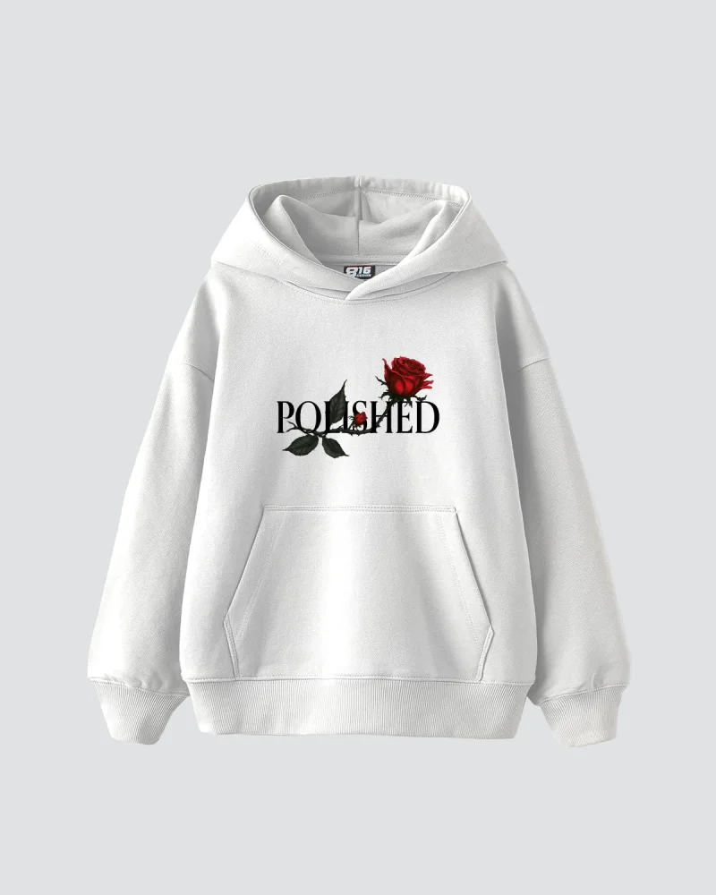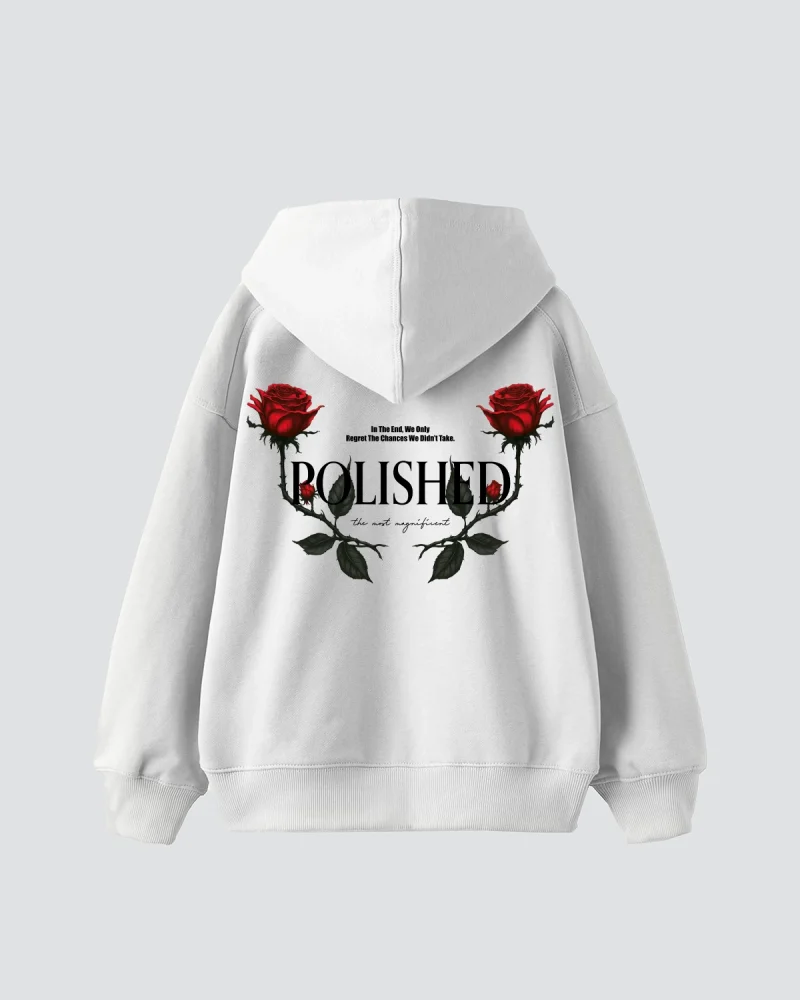 Polished Rose Baskılı Oversize Unisex Beyaz Hoodie