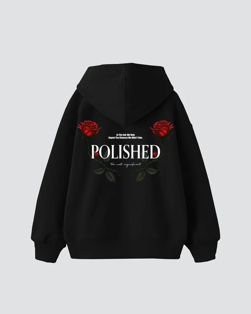 Polished Rose Baskılı Oversize Unisex Siyah Hoodie