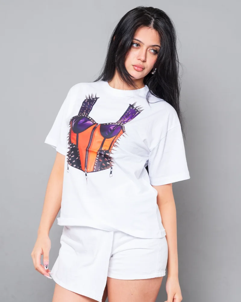 Risk Corset Baskılı Relaxed Fit Beyaz Kadın Tshirt