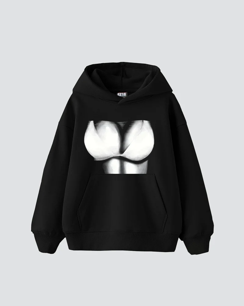 Silhouette Boobs Baskılı Oversize Unisex Siyah Hoodie