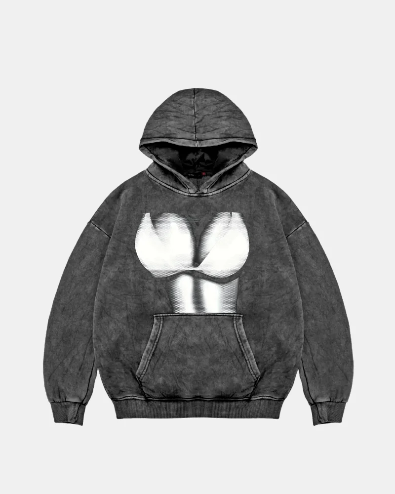 Silhouette Boobs Baskılı Oversize Unisex Yıkamalı Siyah Hoodie