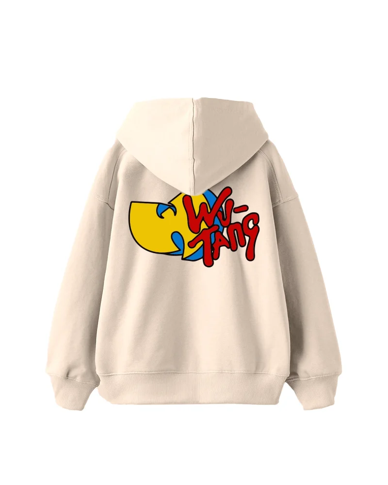 Wu Tang Baskılı Oversize Unisex Bej Hoodie