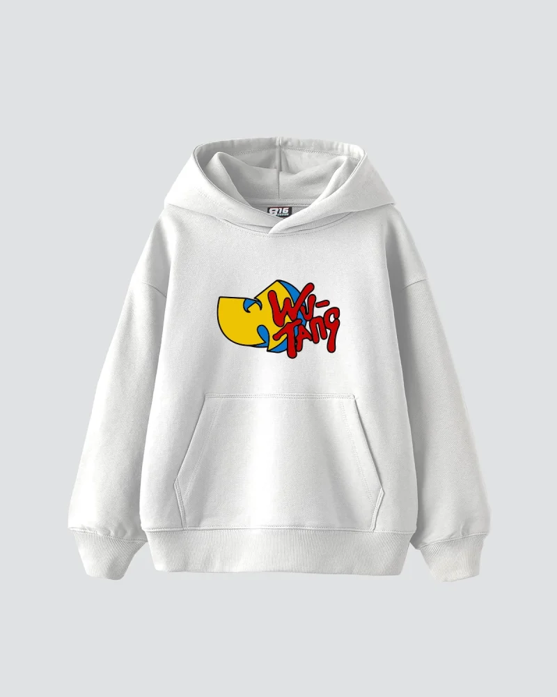 Wu Tang Baskılı Oversize Unisex Beyaz Hoodie
