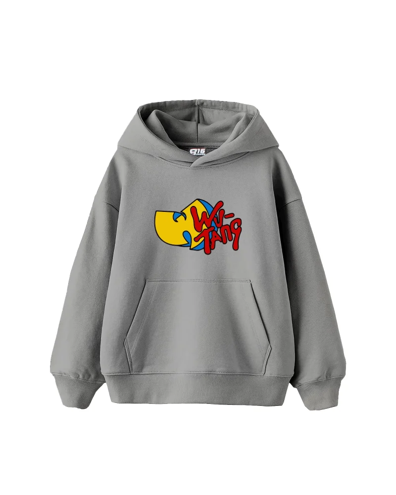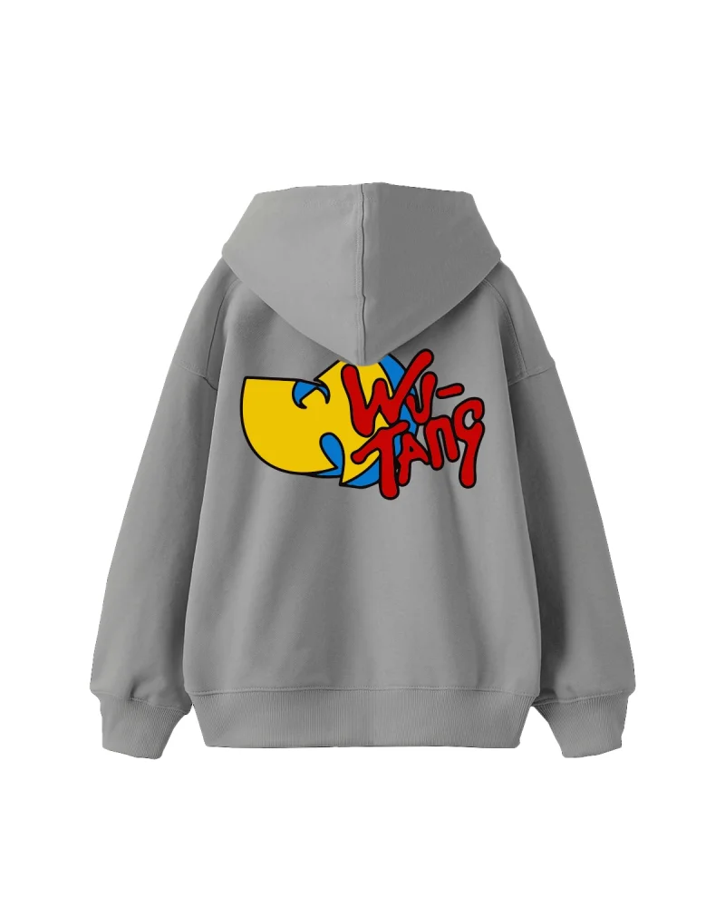 Wu Tang Baskılı Oversize Unisex Gri Hoodie