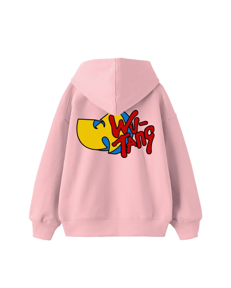 Wu Tang Baskılı Oversize Unisex Pembe Hoodie