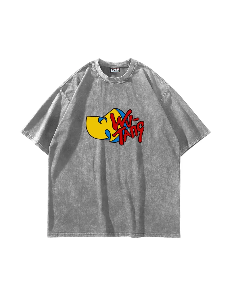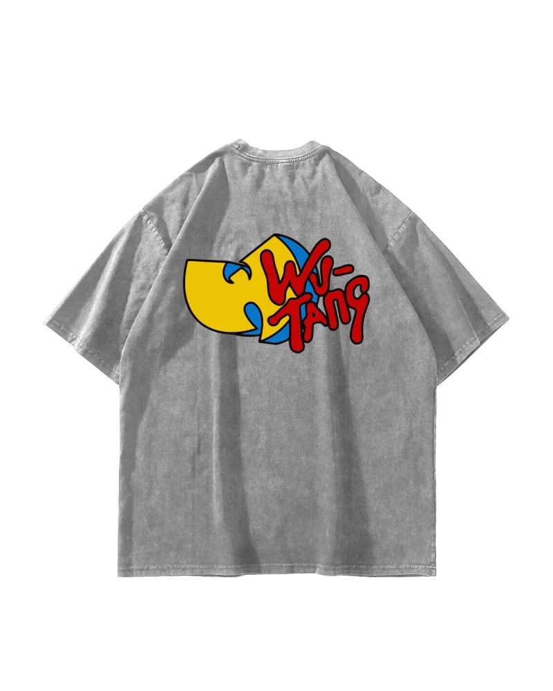 Wu Tang Baskılı Oversize Unisex Yıkamalı Siyah Tshirt