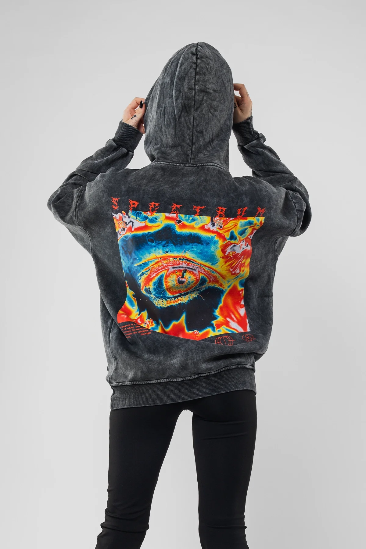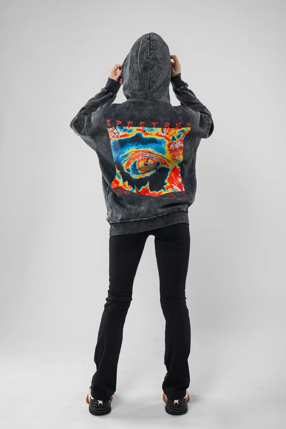 YIKAMALI SPECTRUM SIRT BASKILI OVERSİZE UNİSEX FÜME HOODİE