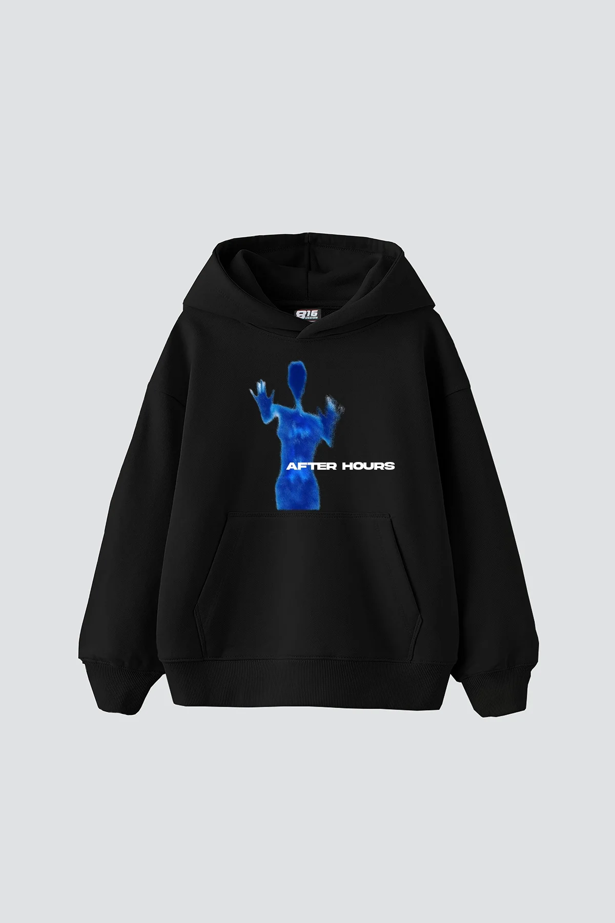 AFTER HOURS BASKILI OVERSİZE UNİSEX PREMİUM SİYAH HOODİE