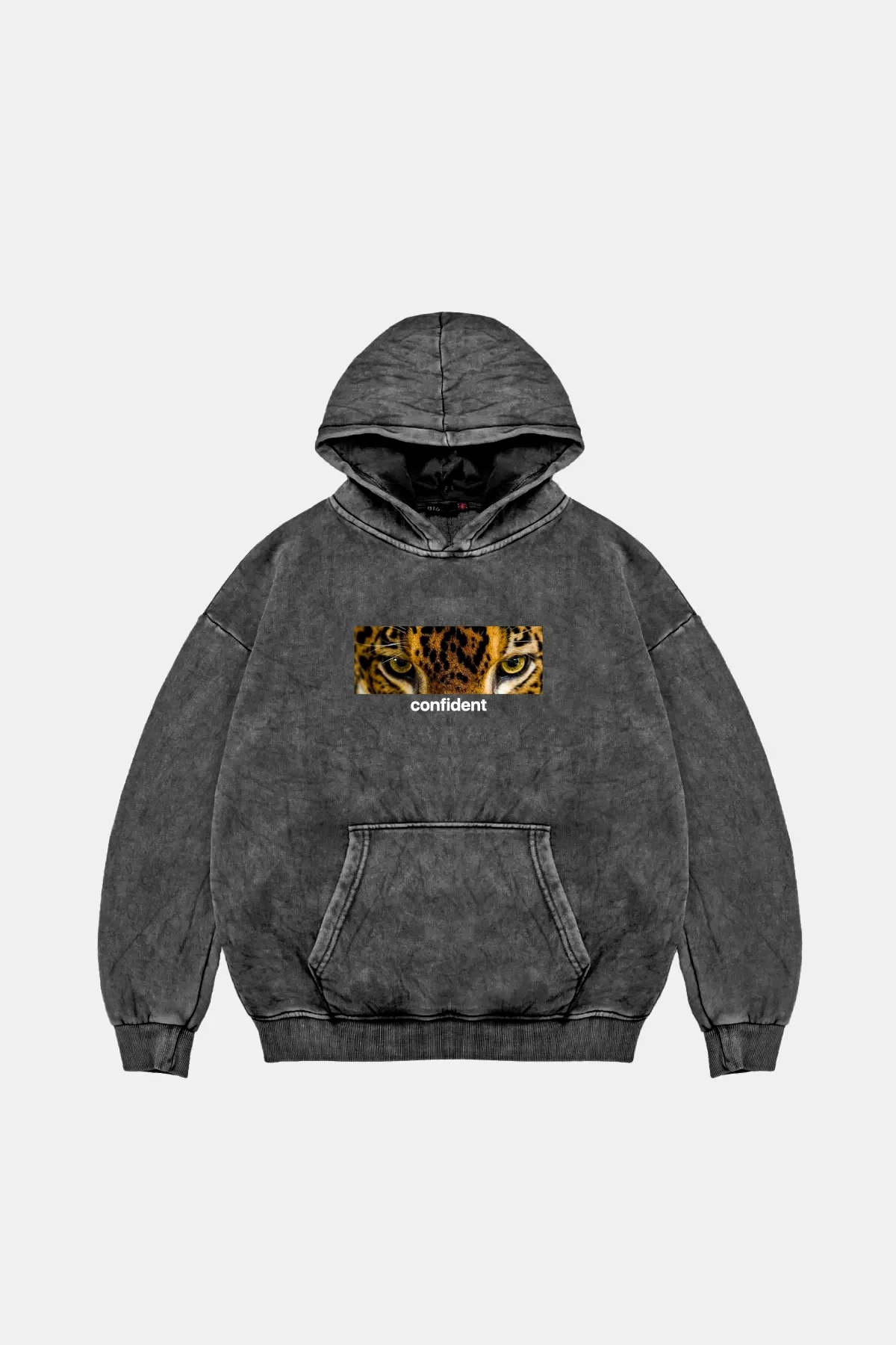 CONFİDENT BASKILI OVERSİZE UNİSEX PREMİUM YIKAMALI SİYAH HOODİE