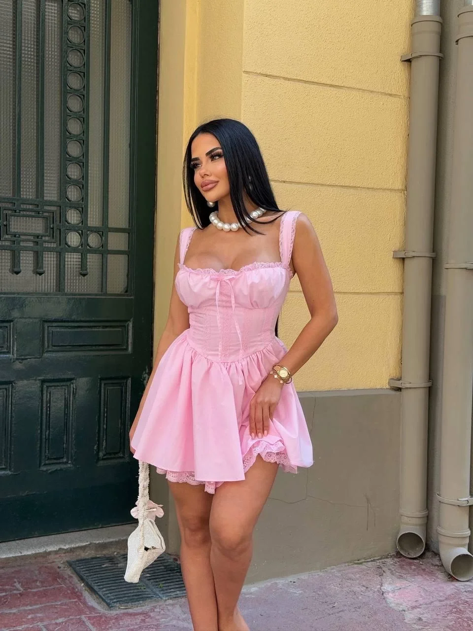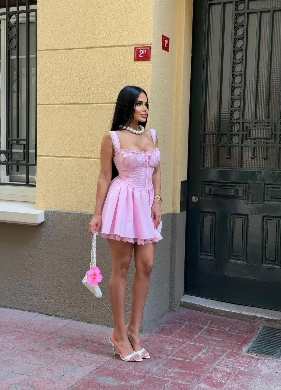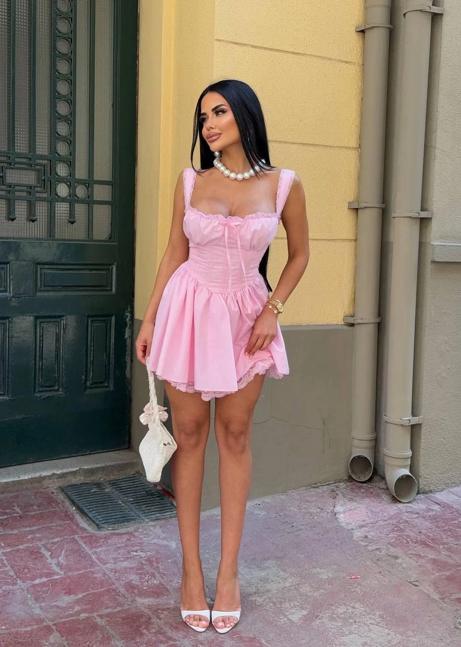 Zarafet ve şıklığın buluştuğu bu askılı dantel işlemeli elbise, özel günlerin vazgeçilmezi olacak. İnce askıları ve vücudu saran kesimiyle feminen bir siluet sunarken, özenle işlenmiş dantel detaylar romantik ve sofistike bir hava katıyor.