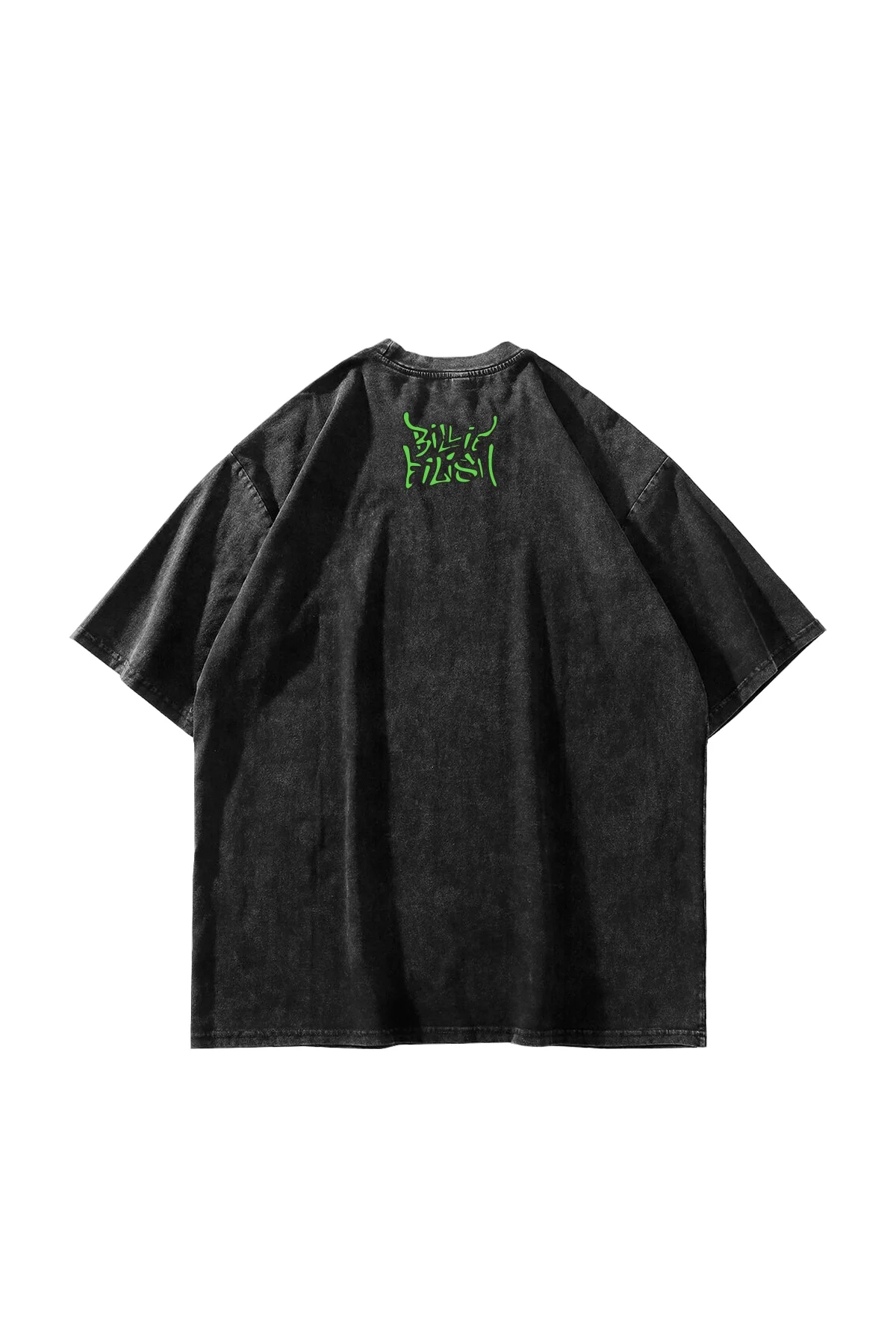 HAPPİER THAN EVER BASKILI OVERSİZE UNİSEX YIKAMALI SİYAH TSHİRT