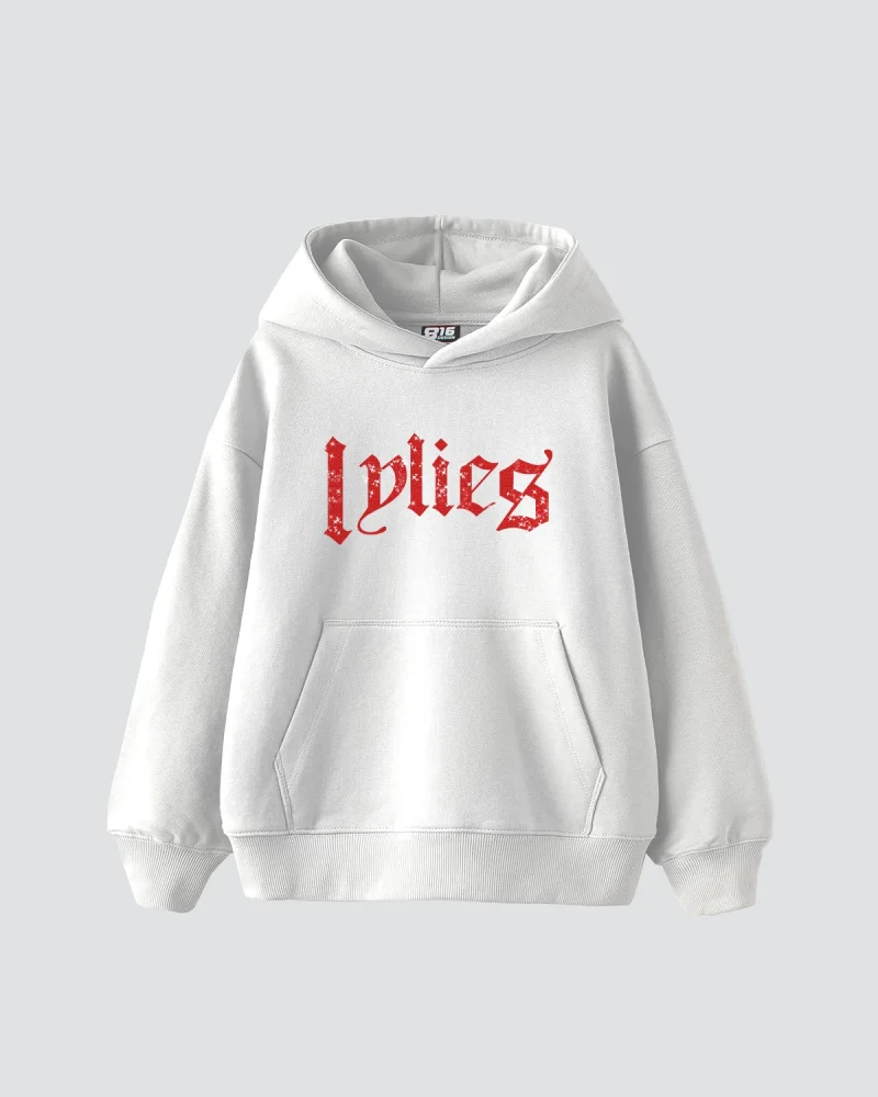 Lylies Kırmızı Taş Baskılı Oversize Unisex Yıkamalı Beyaz Hoodie
