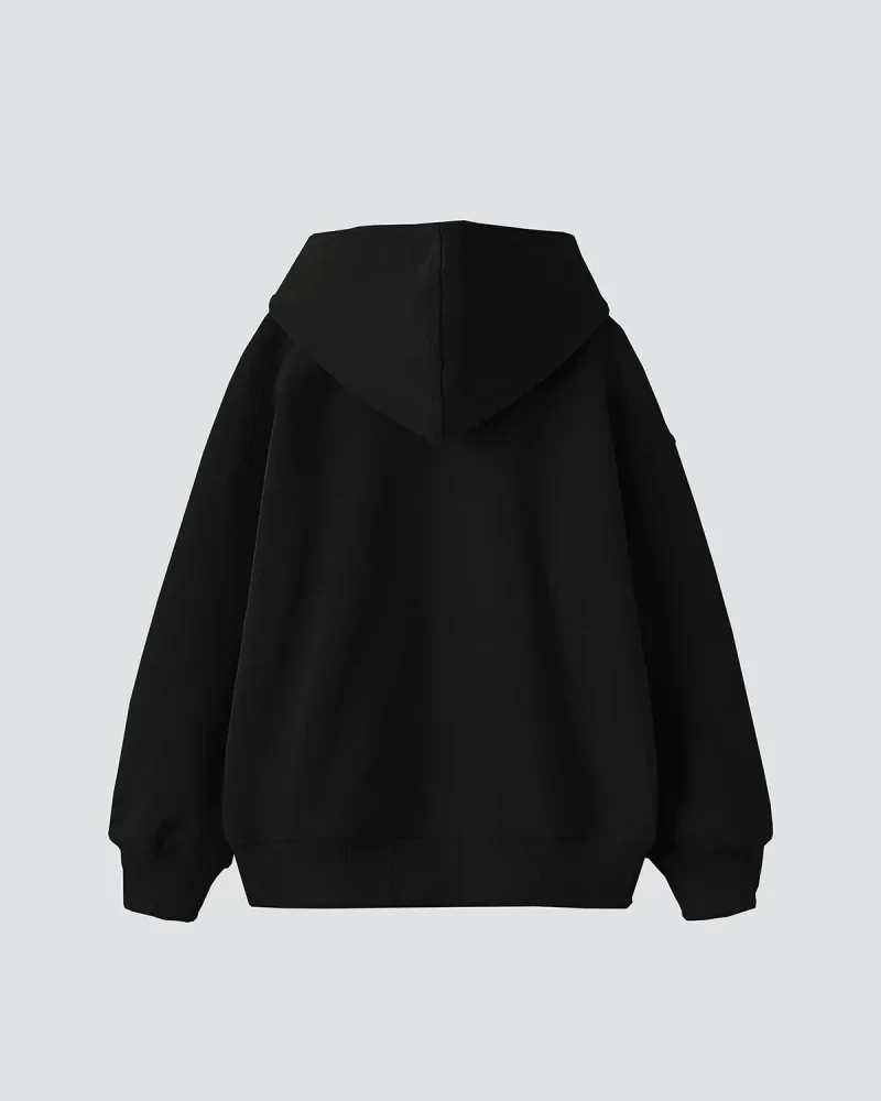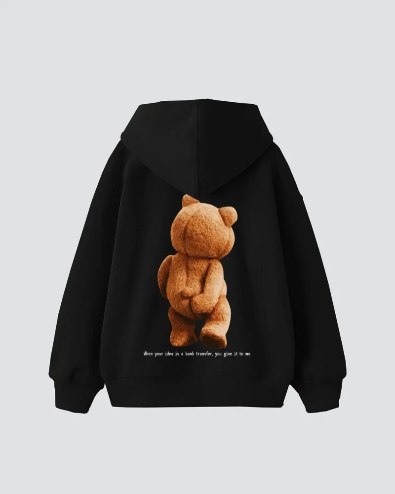 Bear Sırt Baskılı Oversize Unisex Siyah Hoodie