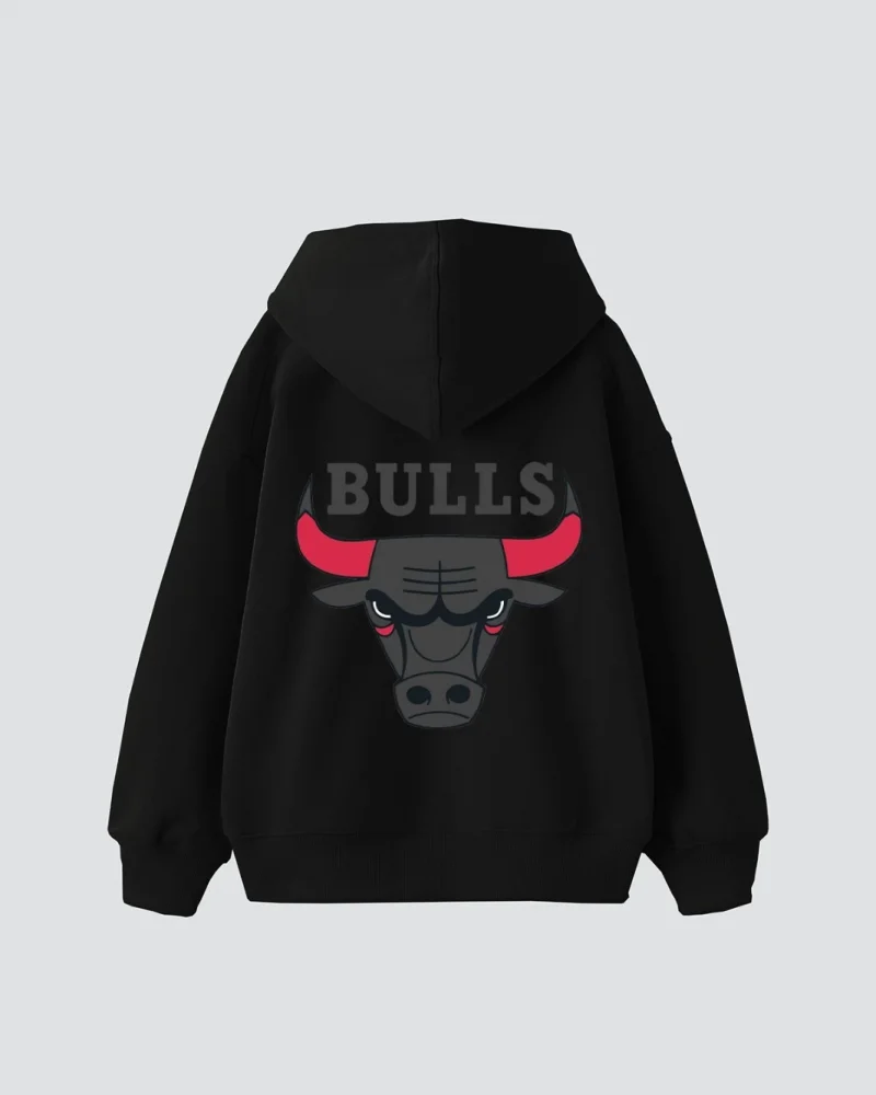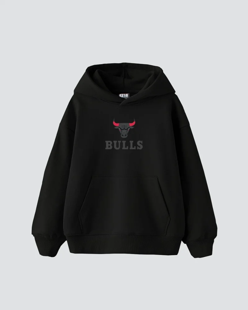 Bulls Baskılı Oversize Unisex Siyah Hoodie