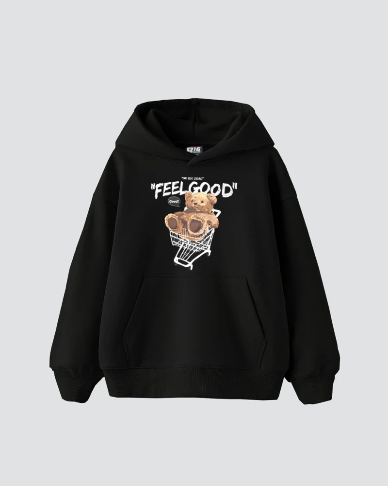 Feel Good Baskılı Oversize Unisex Siyah Hoodie