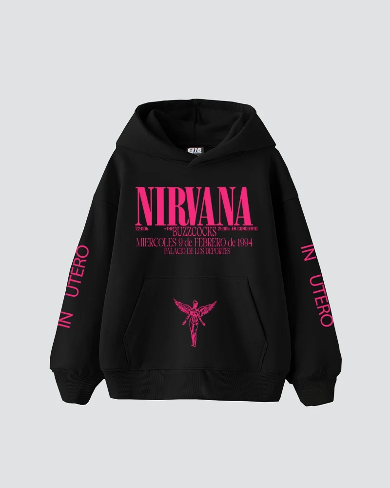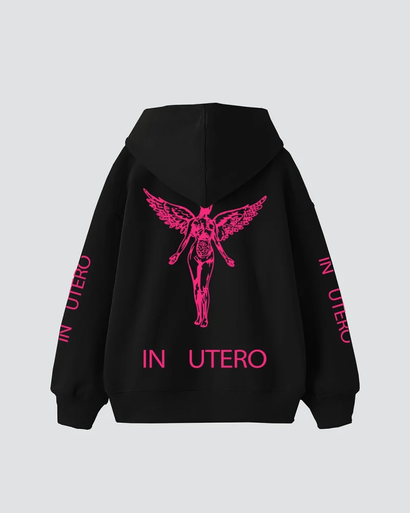 Nirvana In Utero Pembe Baskılı Oversize Unisex Siyah Hoodie
