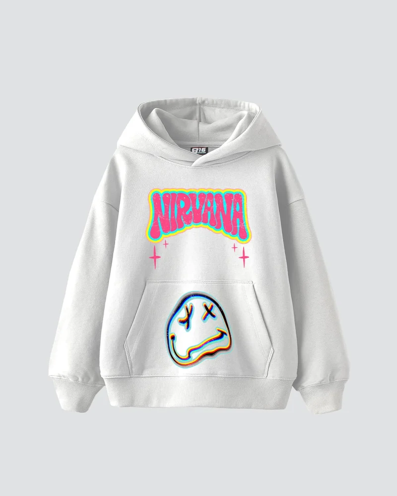 Nirvana Smile Baskılı Oversize Unisex Beyaz Hoodie