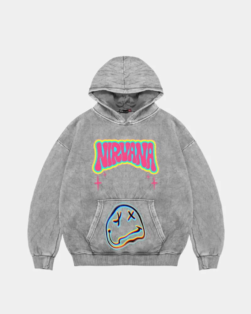 Nirvana Smile Baskılı Oversize Unisex Yıkamalı Beyaz Hoodie