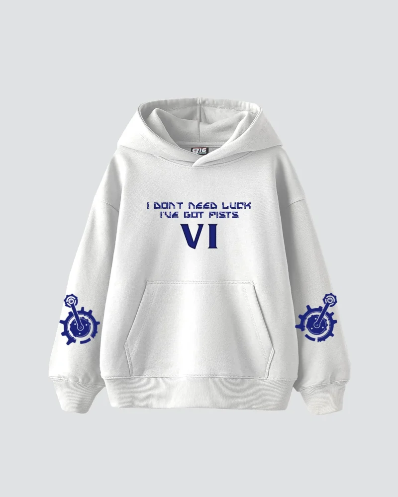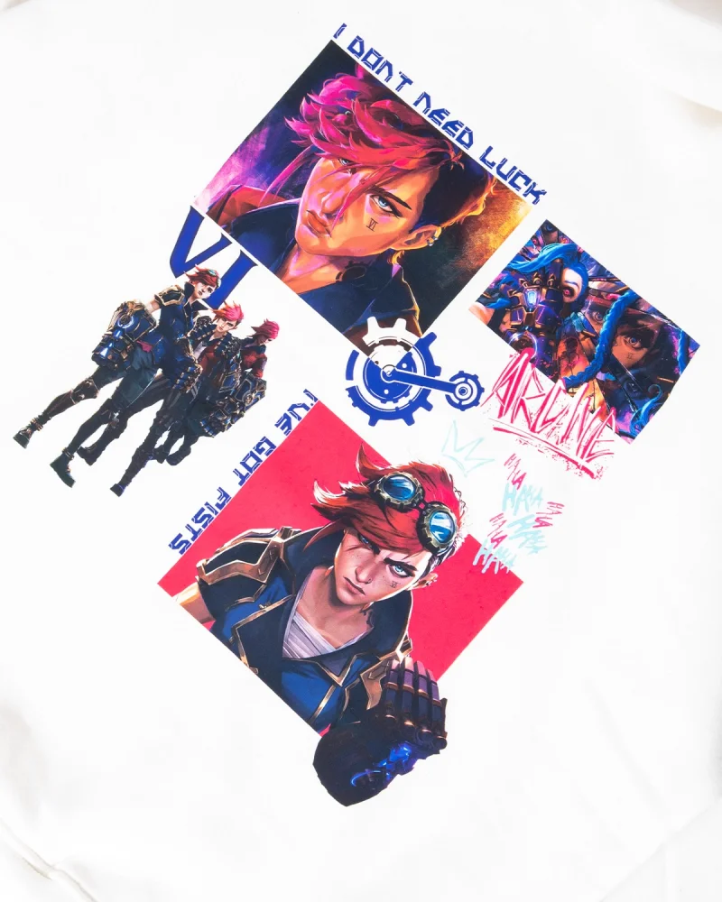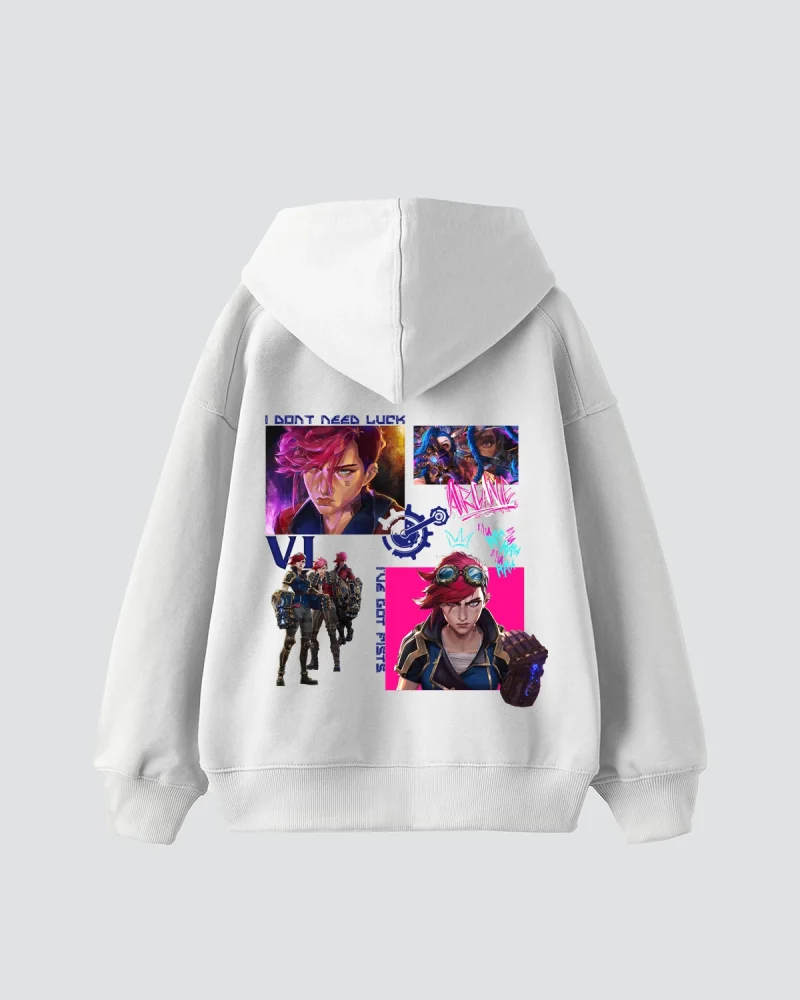 VI Arcane Baskılı Oversize Unisex Beyaz Hoodie