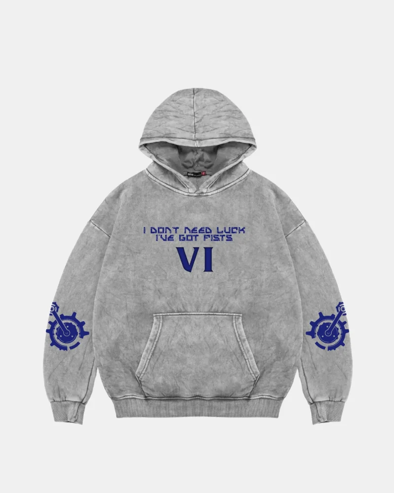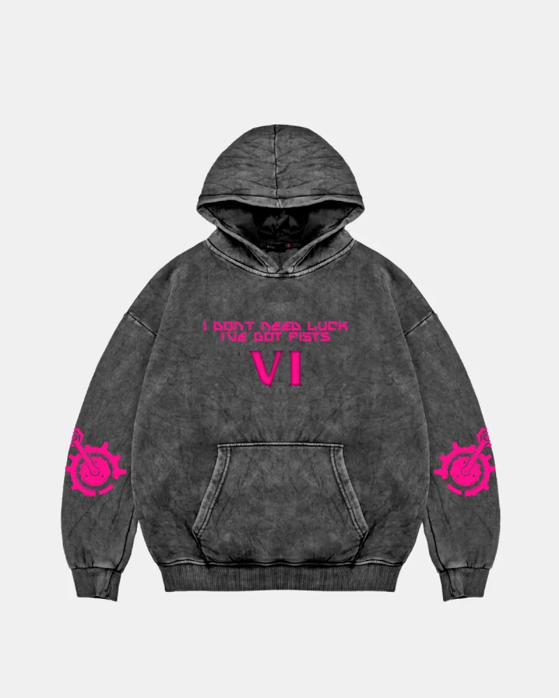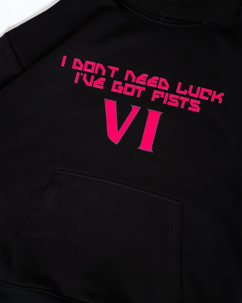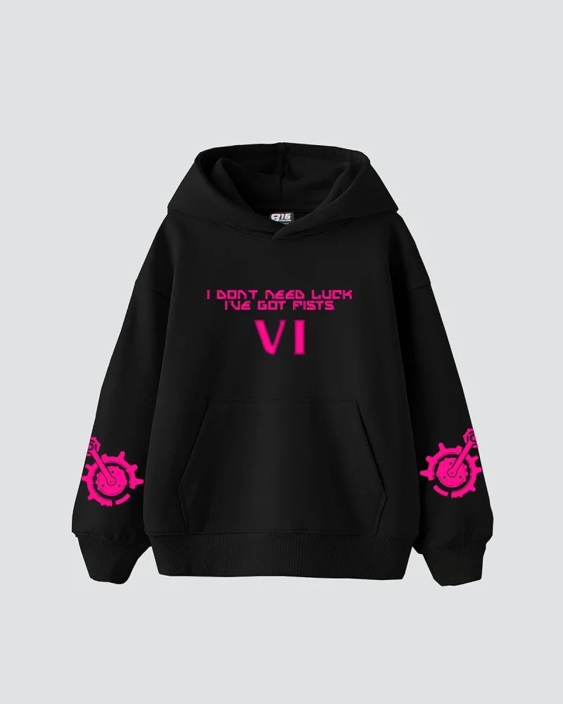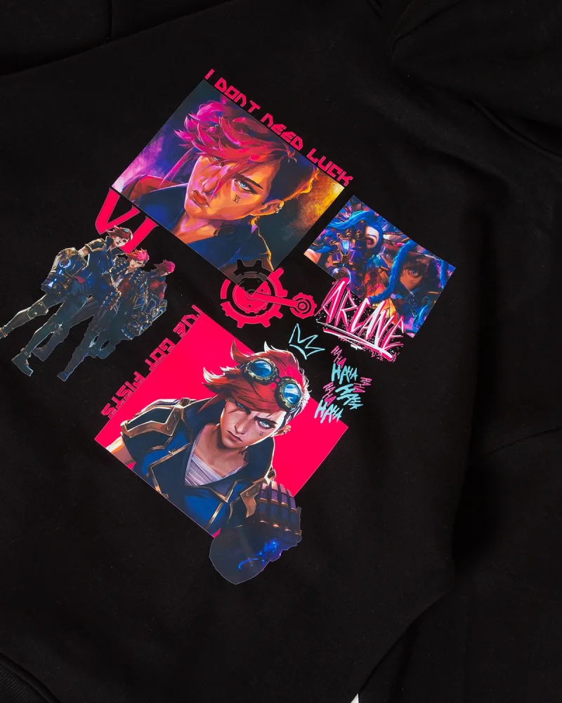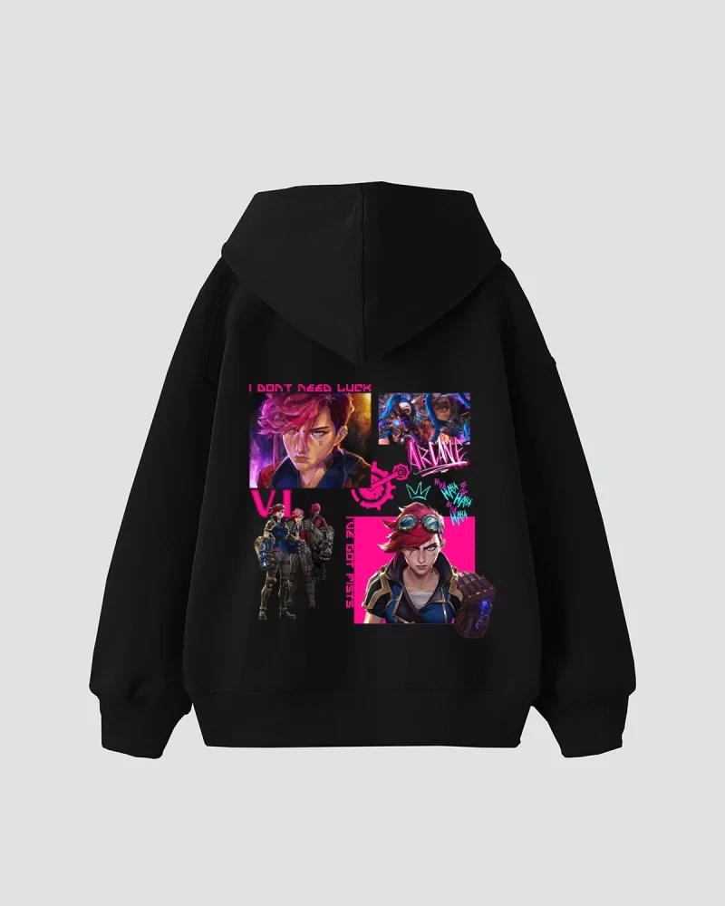 VI Arcane Baskılı Oversize Unisex Siyah Hoodie