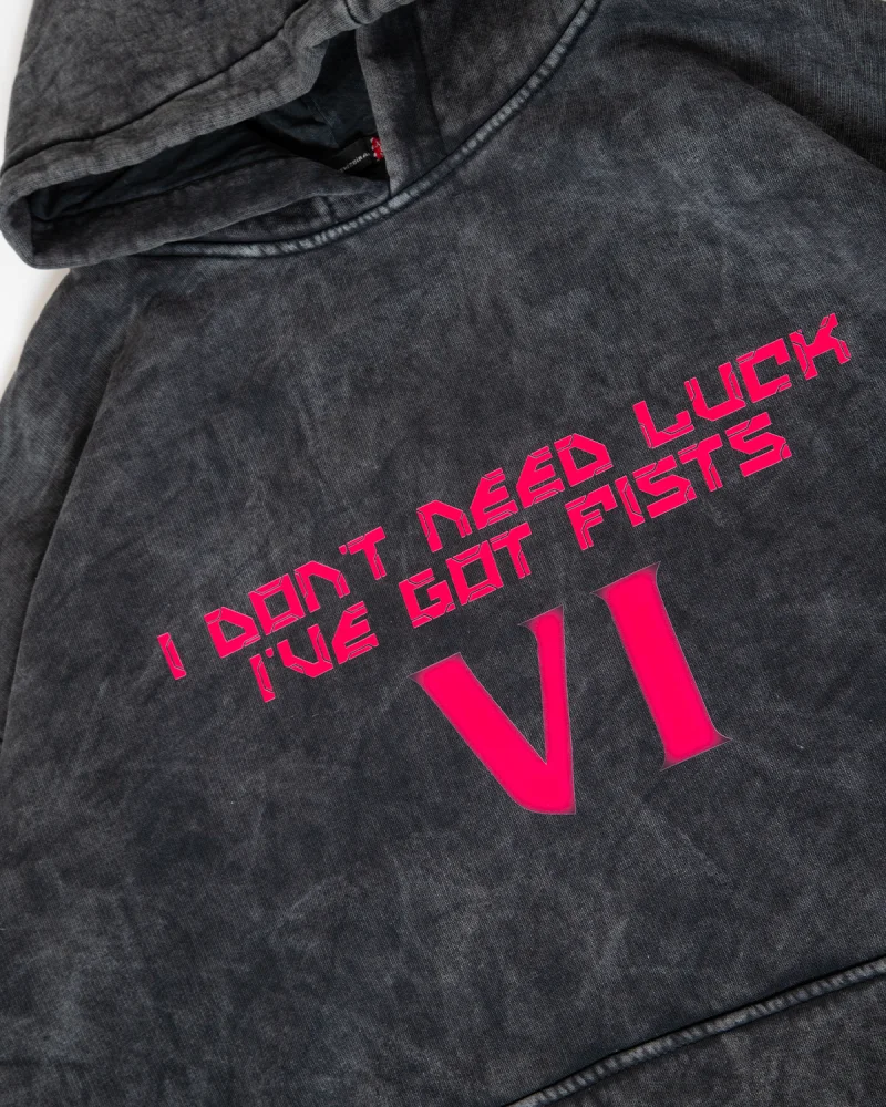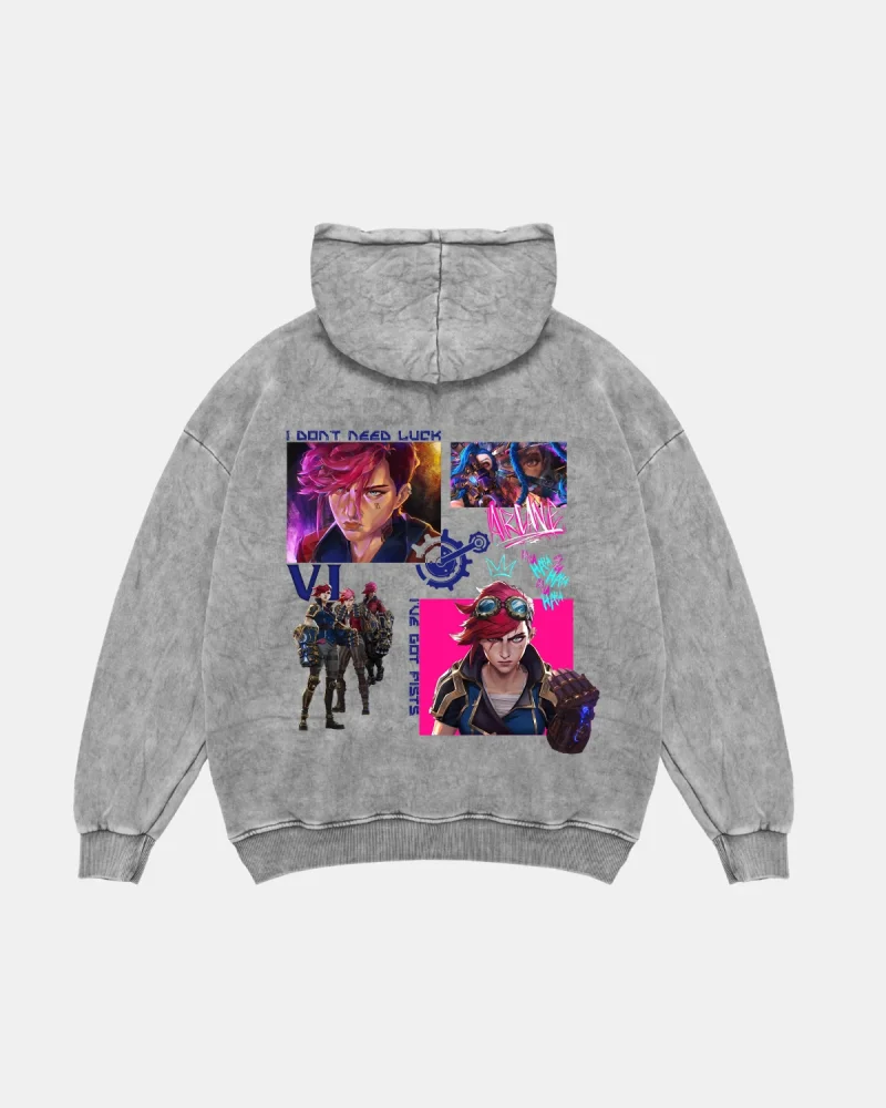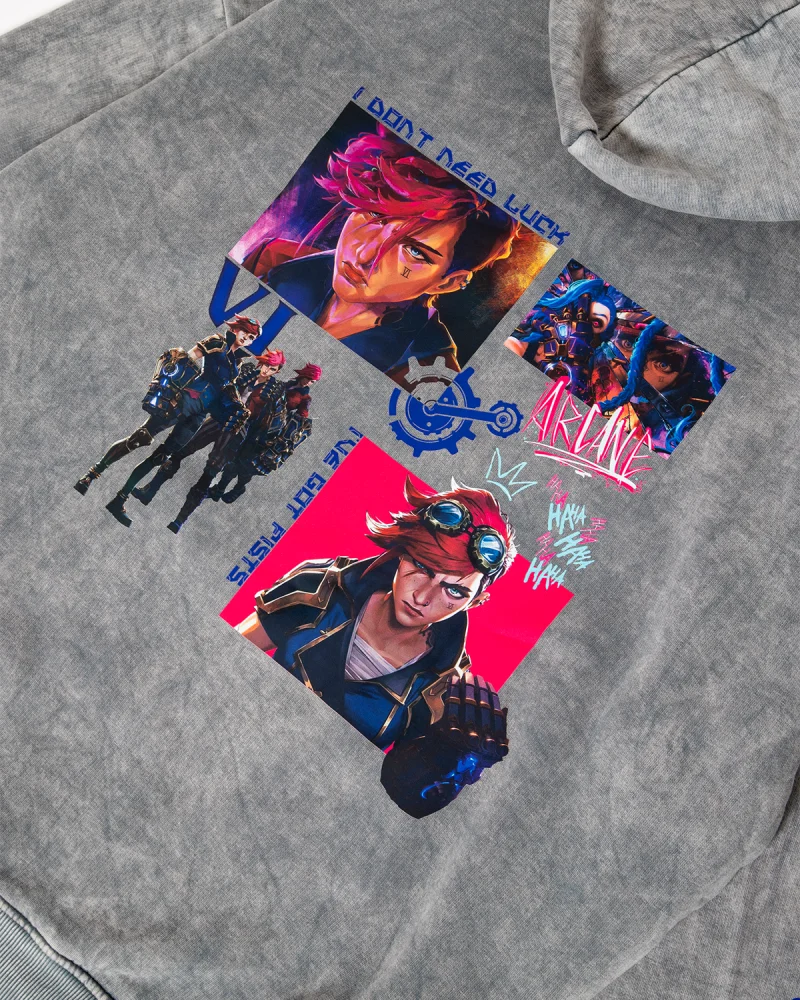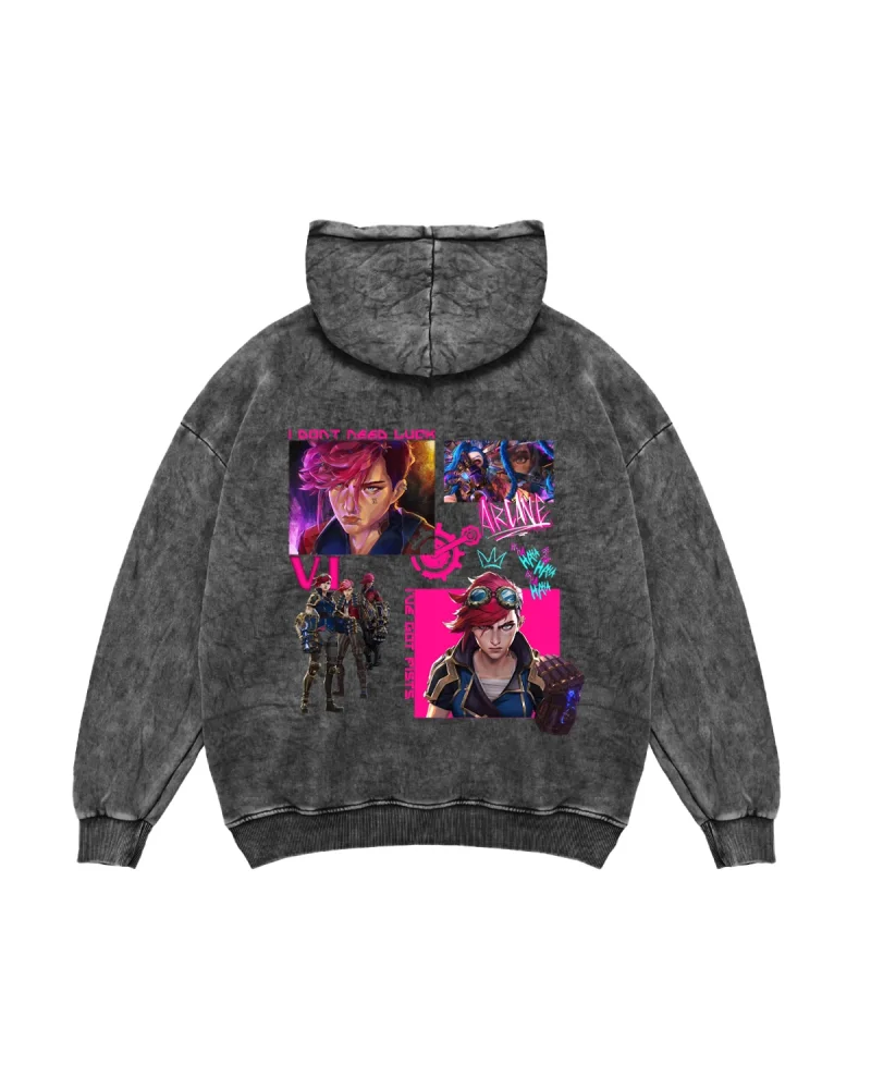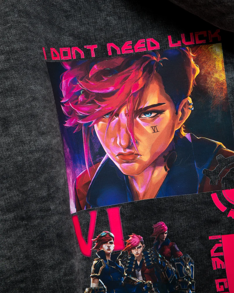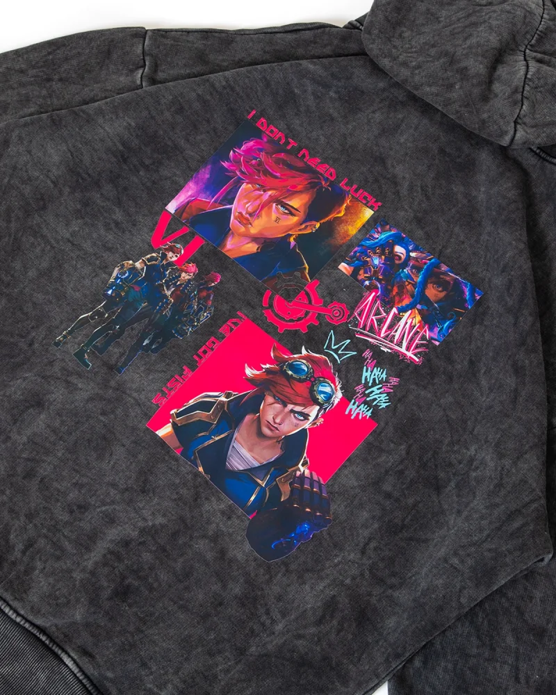 VI Arcane Baskılı Oversize Unisex Yıkamalı Siyah Hoodie