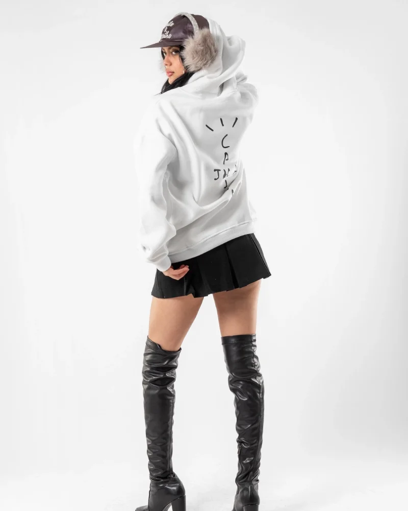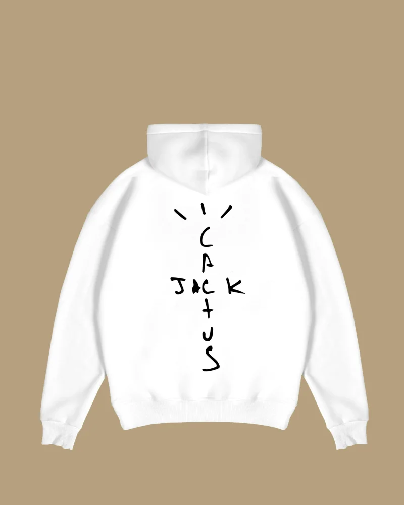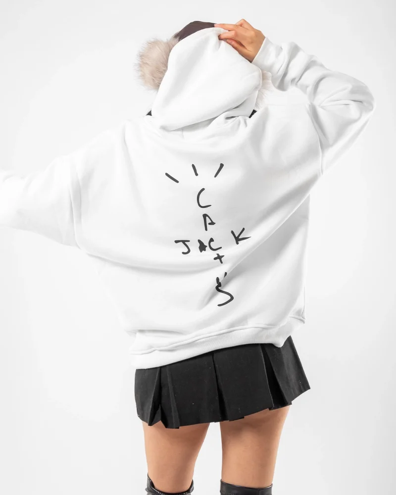 Cactus Jack Sırt Baskılı Oversize Unisex Beyaz Hoodie