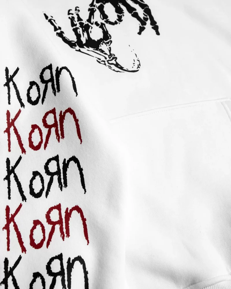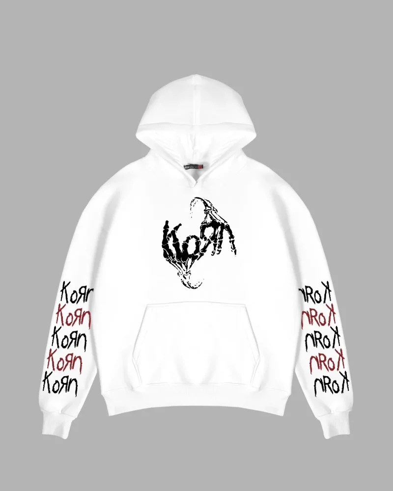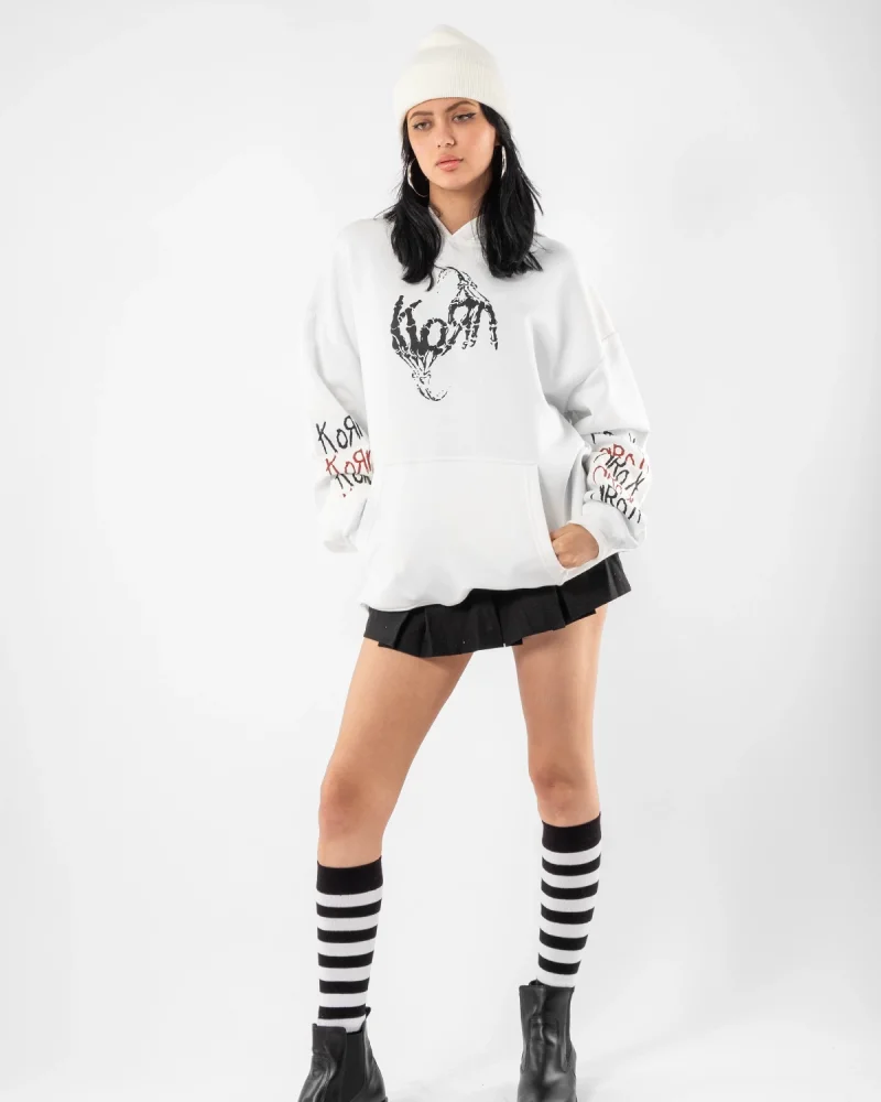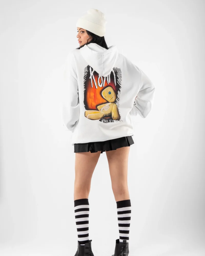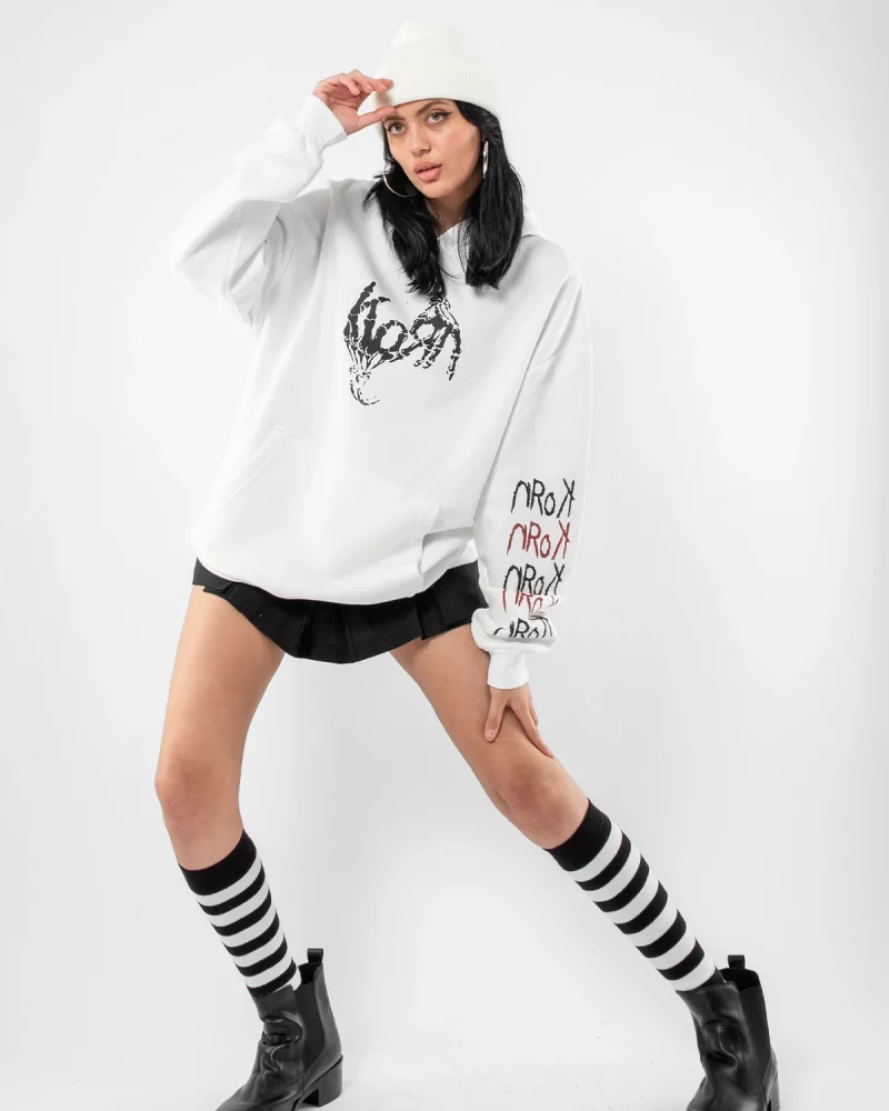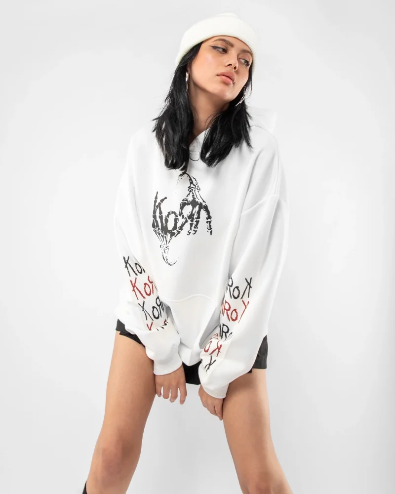Korn Baskılı Oversize Unisex Beyaz Hoodie