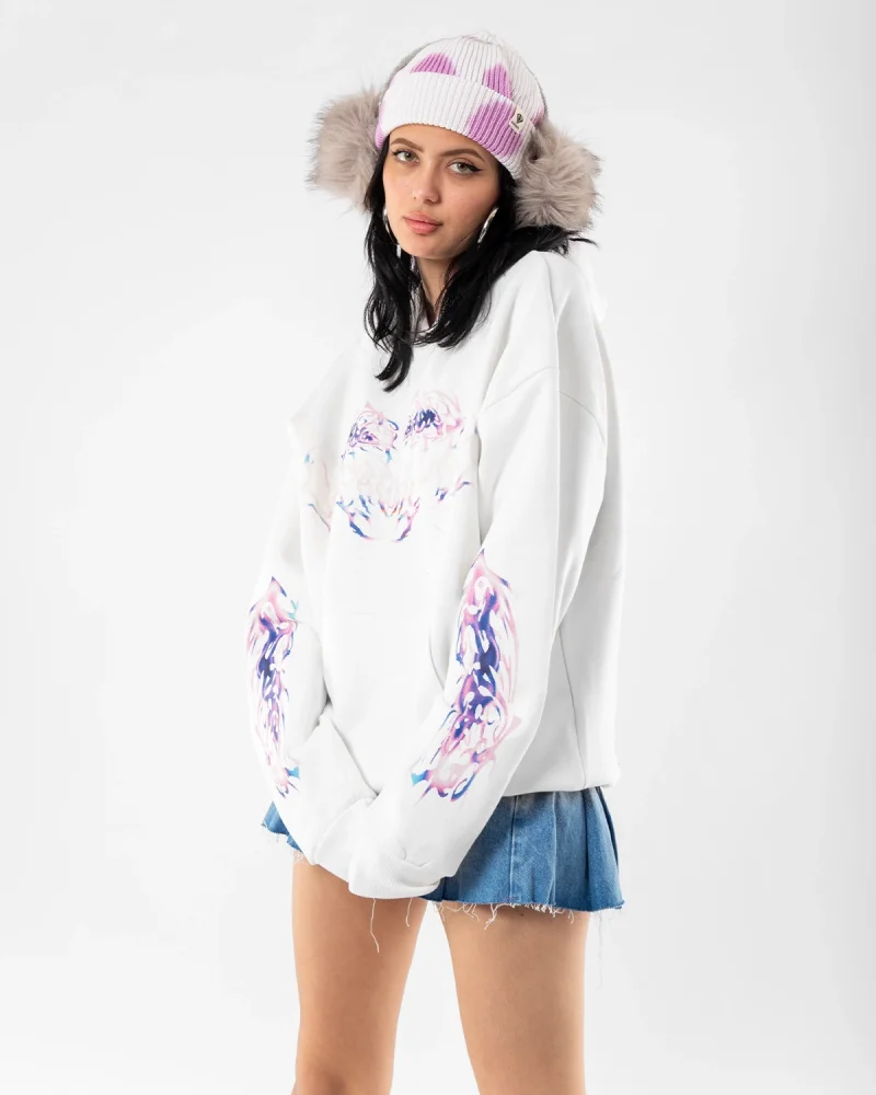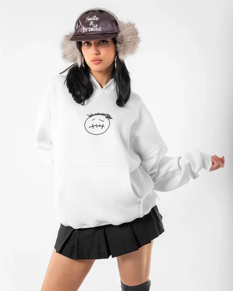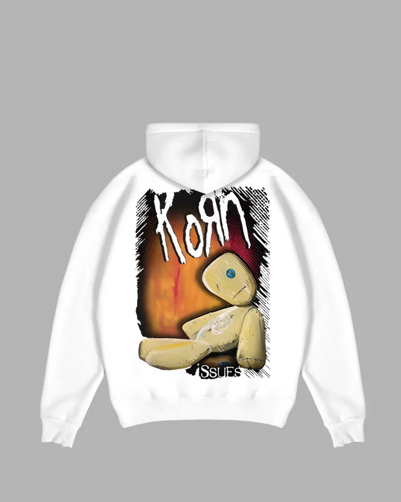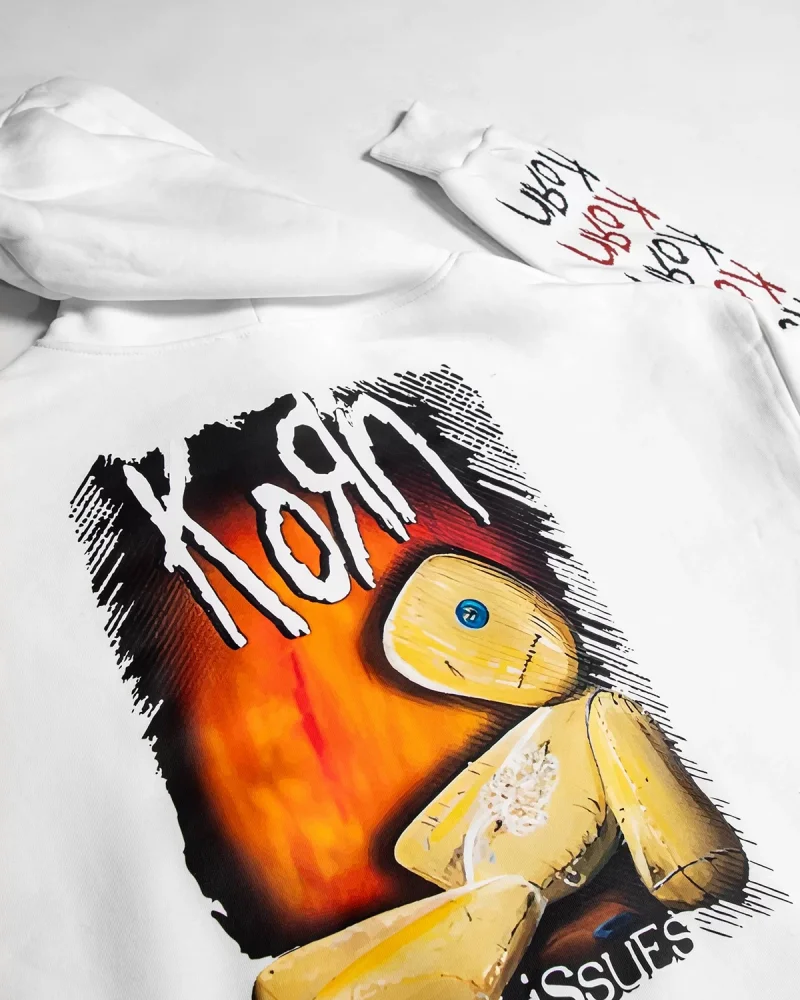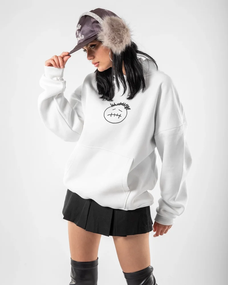 Korn Baskılı Oversize Unisex Beyaz Hoodie