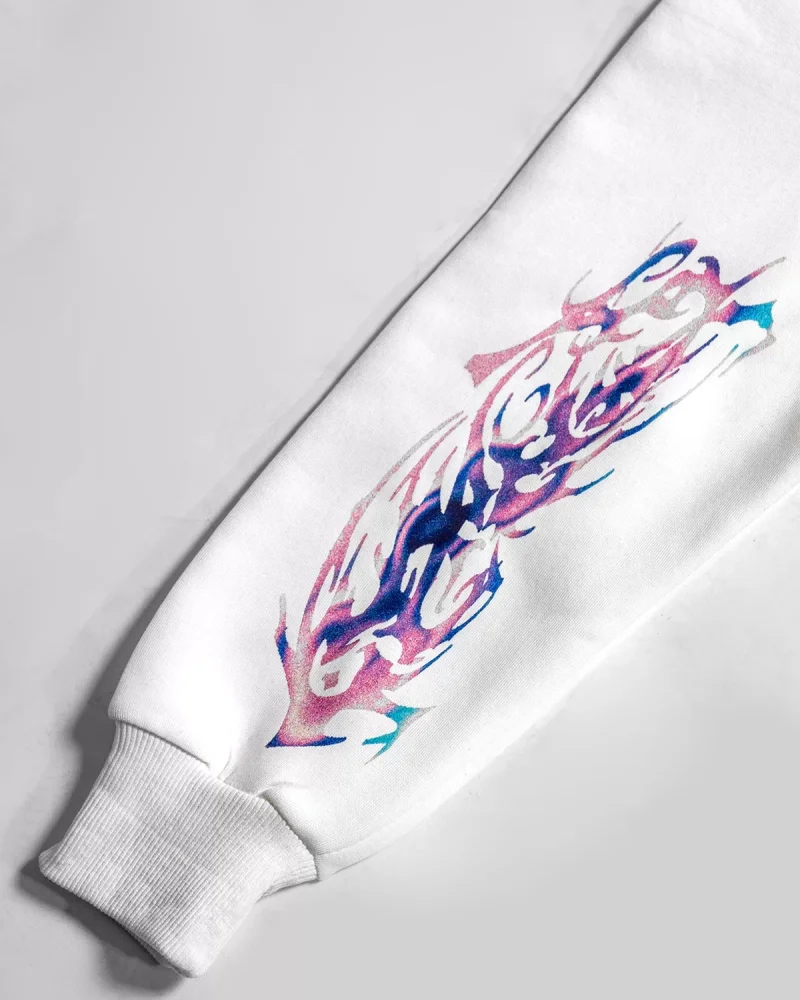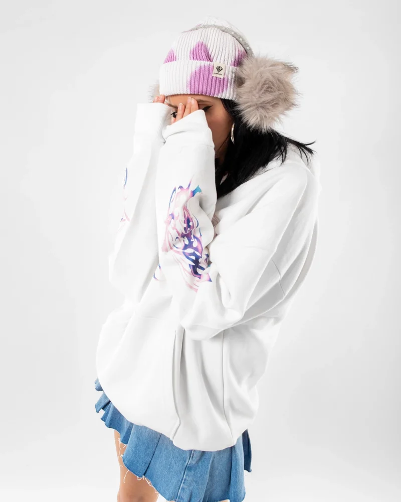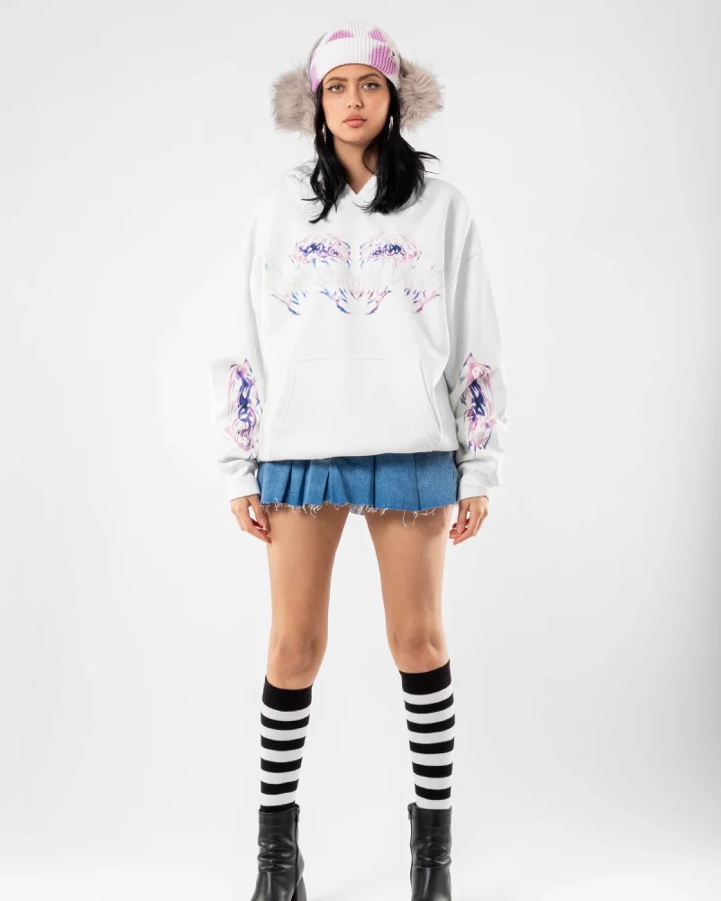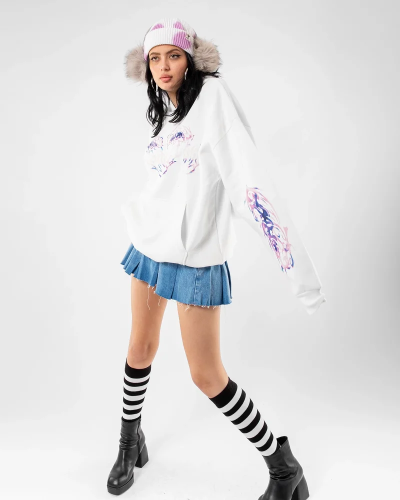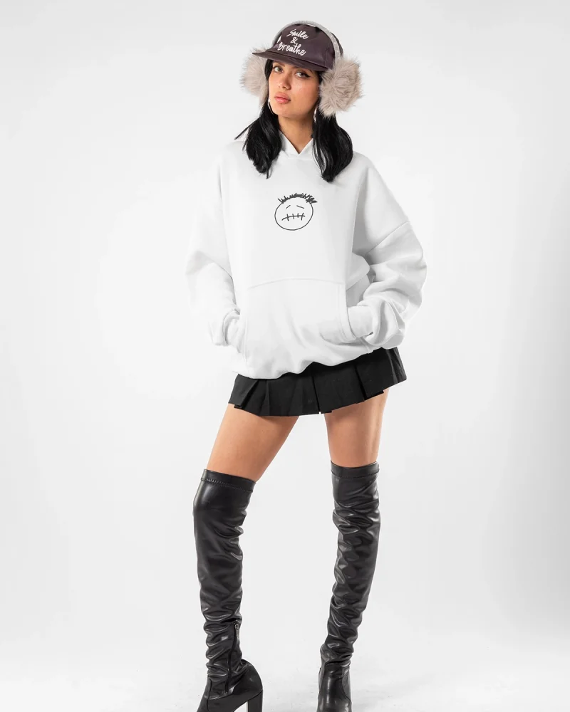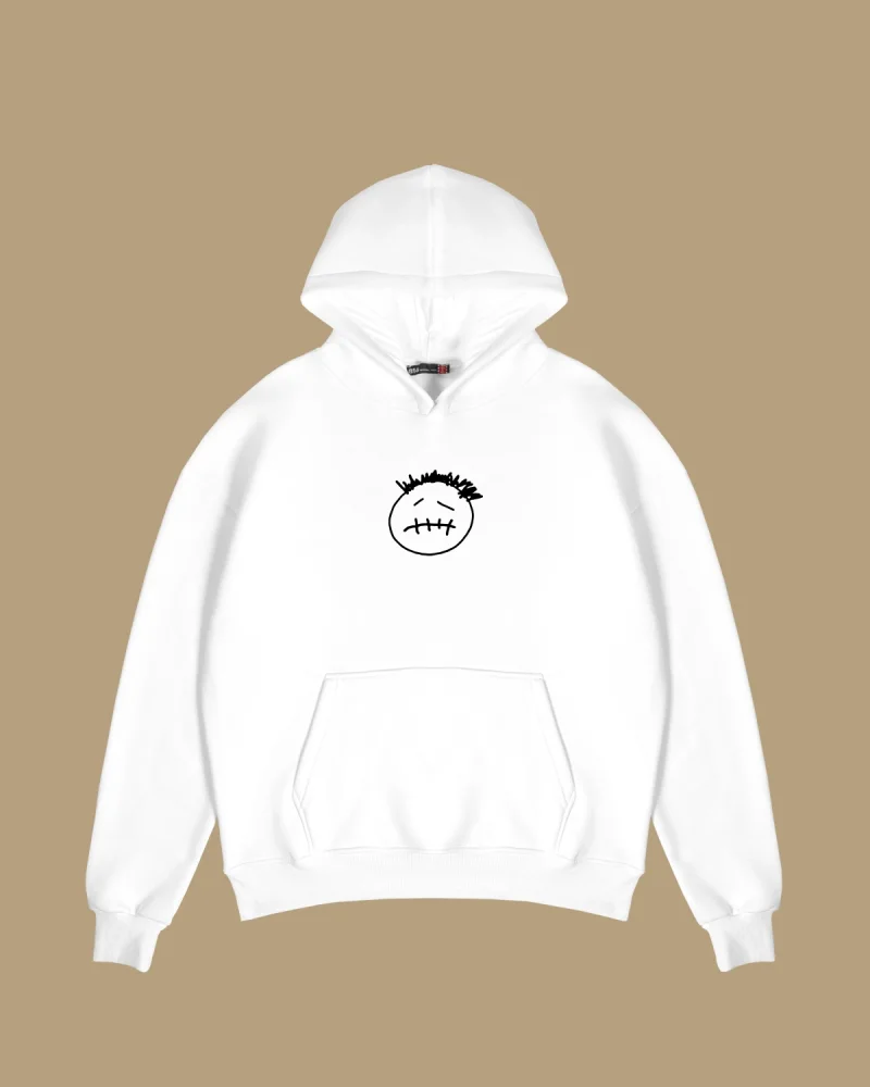 Korn Baskılı Oversize Unisex Beyaz Hoodie