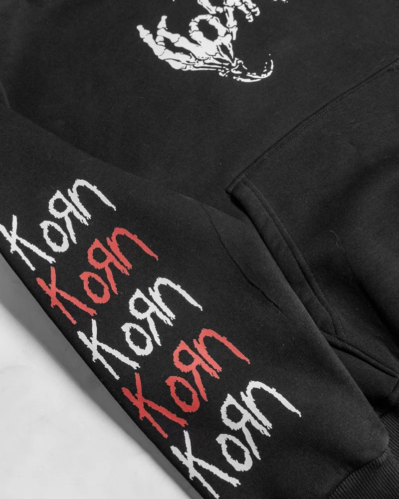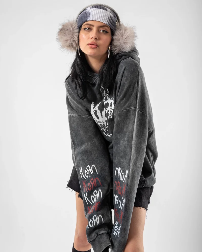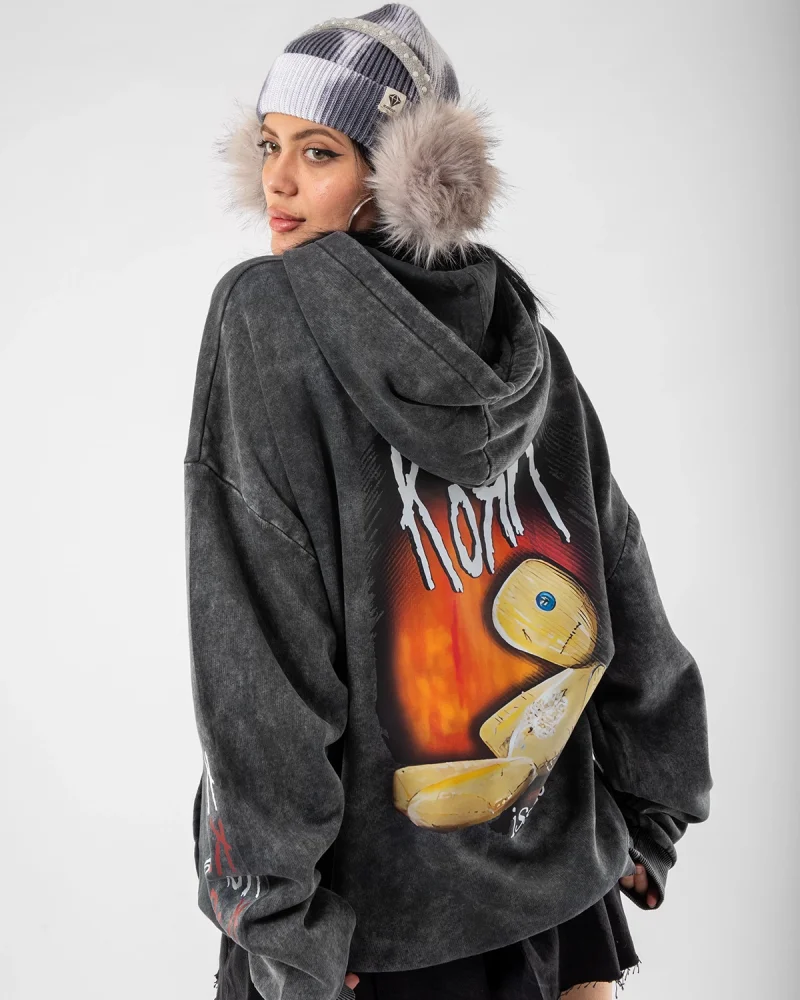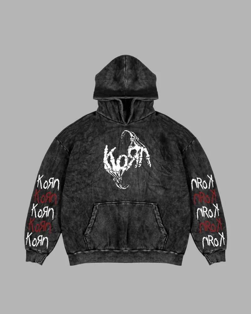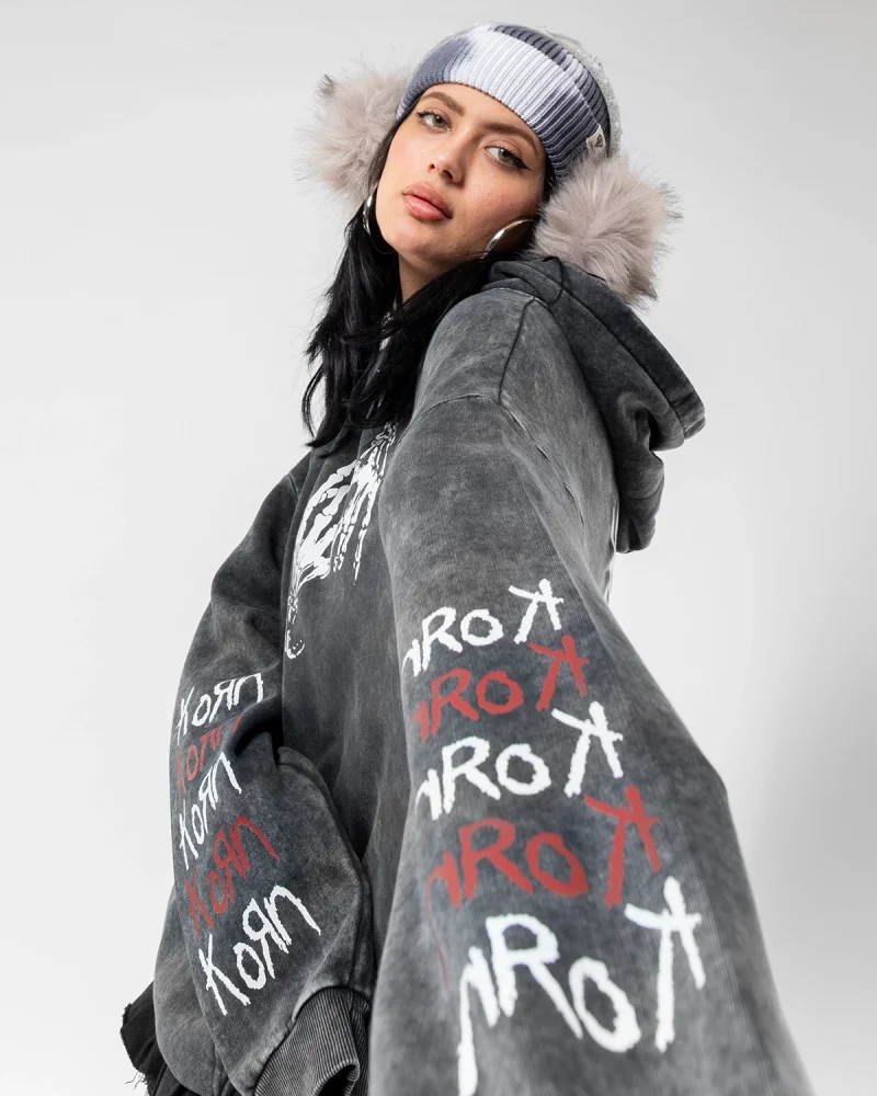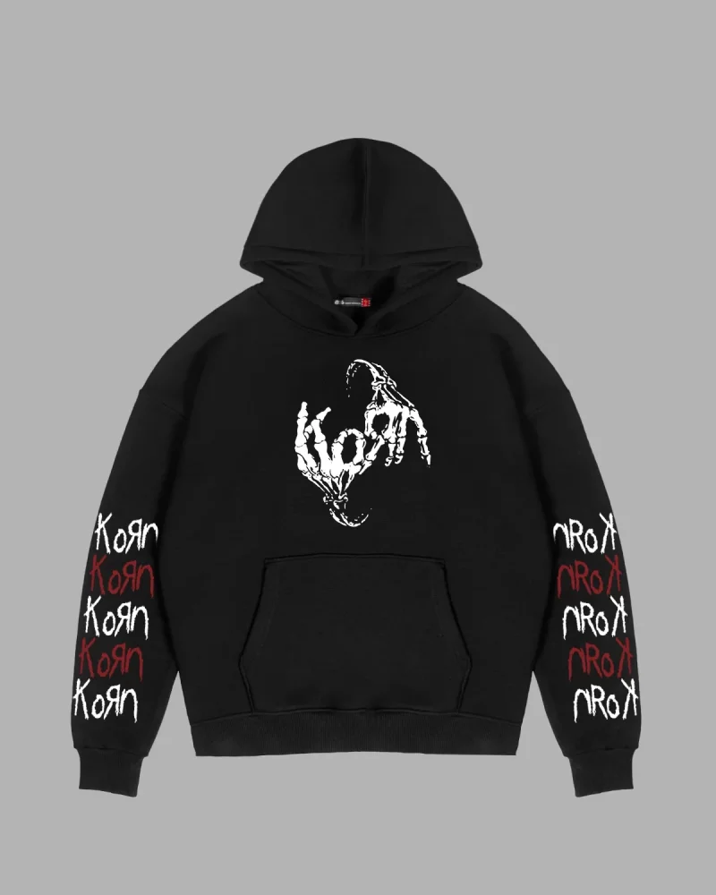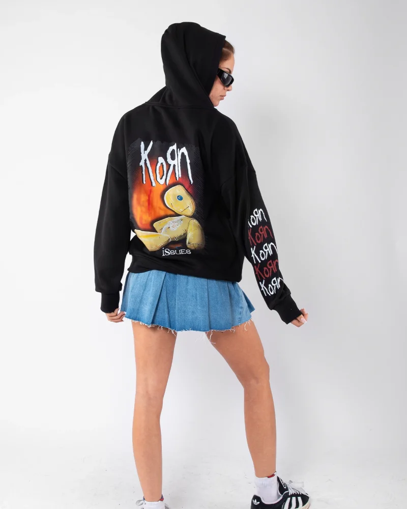 Korn Baskılı Oversize Unisex Siyah Hoodie